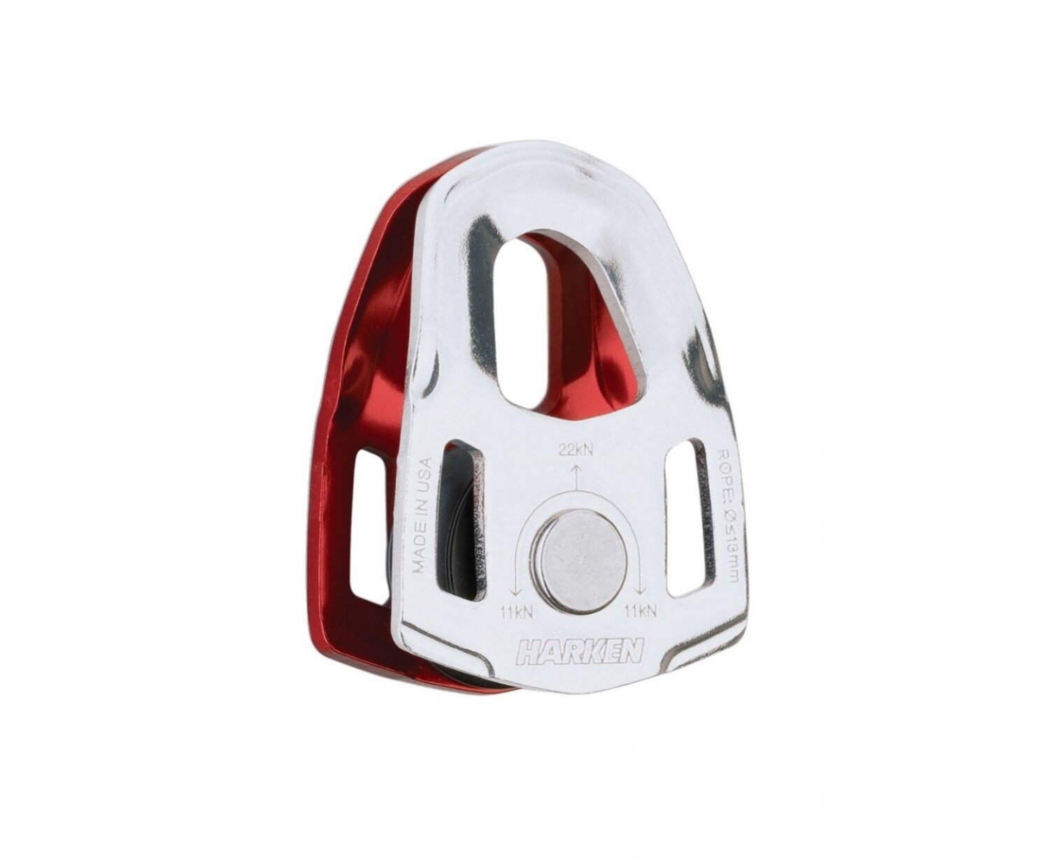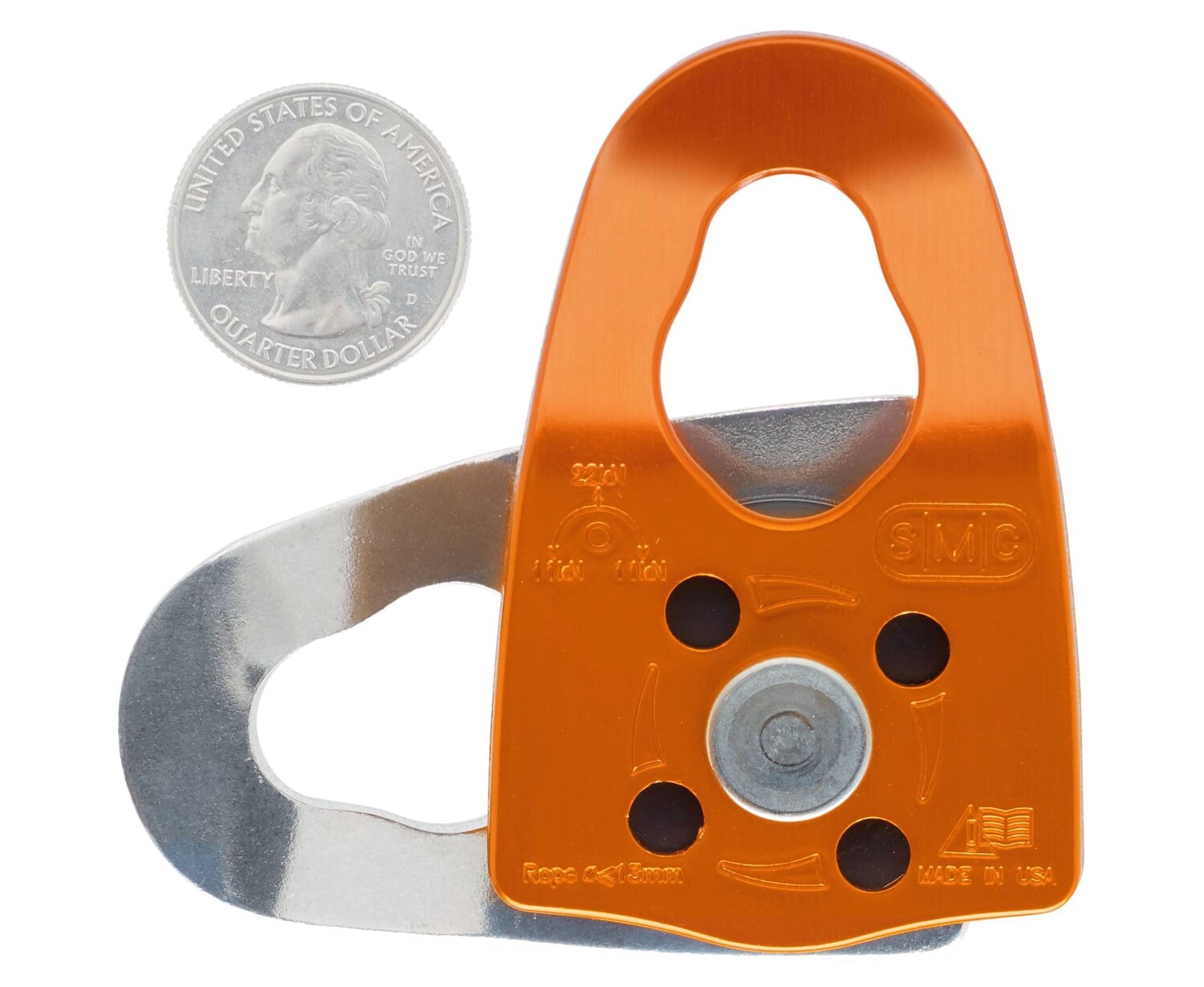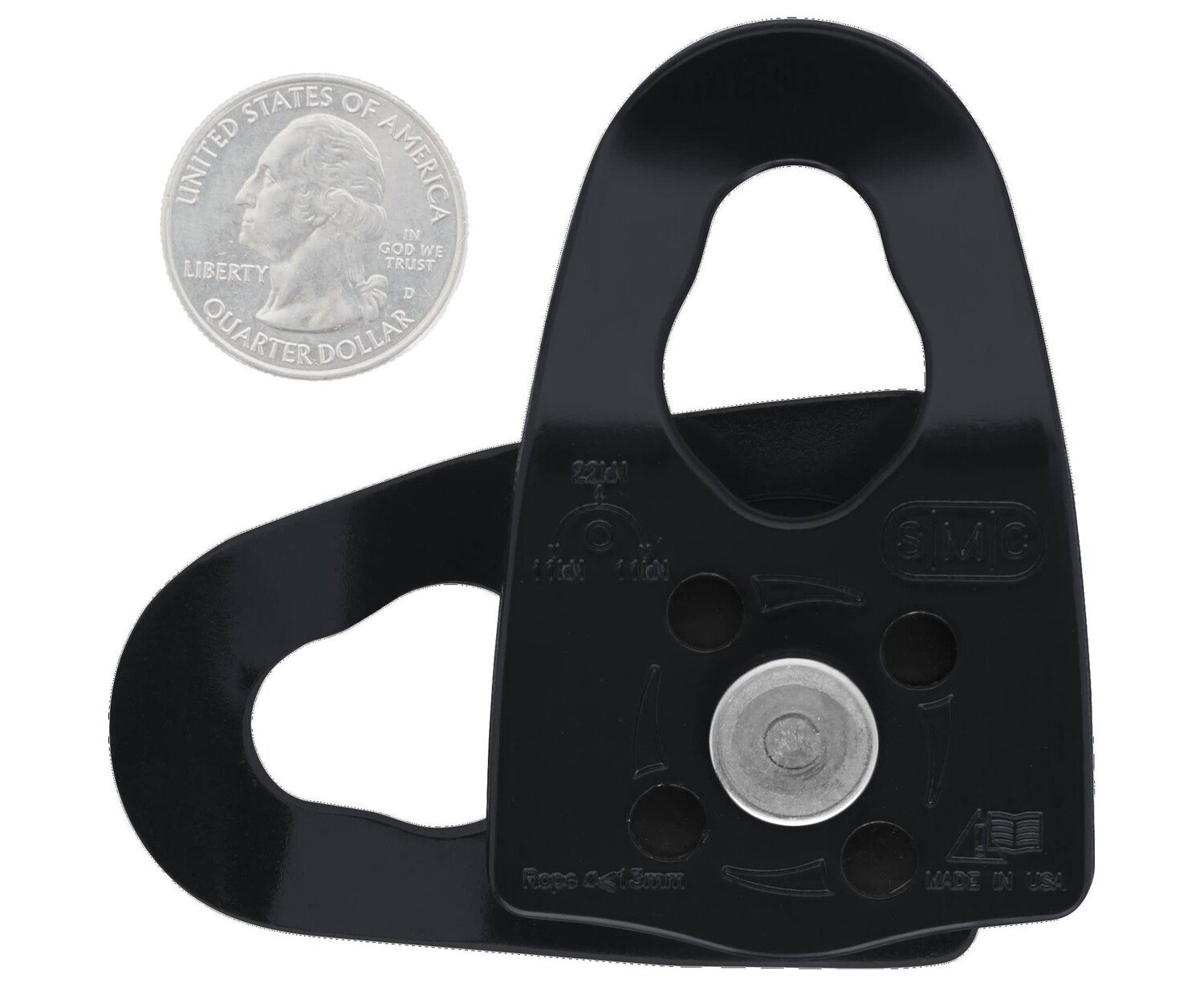 A smooth running 1.25" nylon sheave runs on a stainless steel rivet axle, and the color-contrasting aluminum side plates rotate for easy rope insertion and removal. Easy to use, easy to carry - a great palm-sized partner on the mountain and nearly anywhere else!