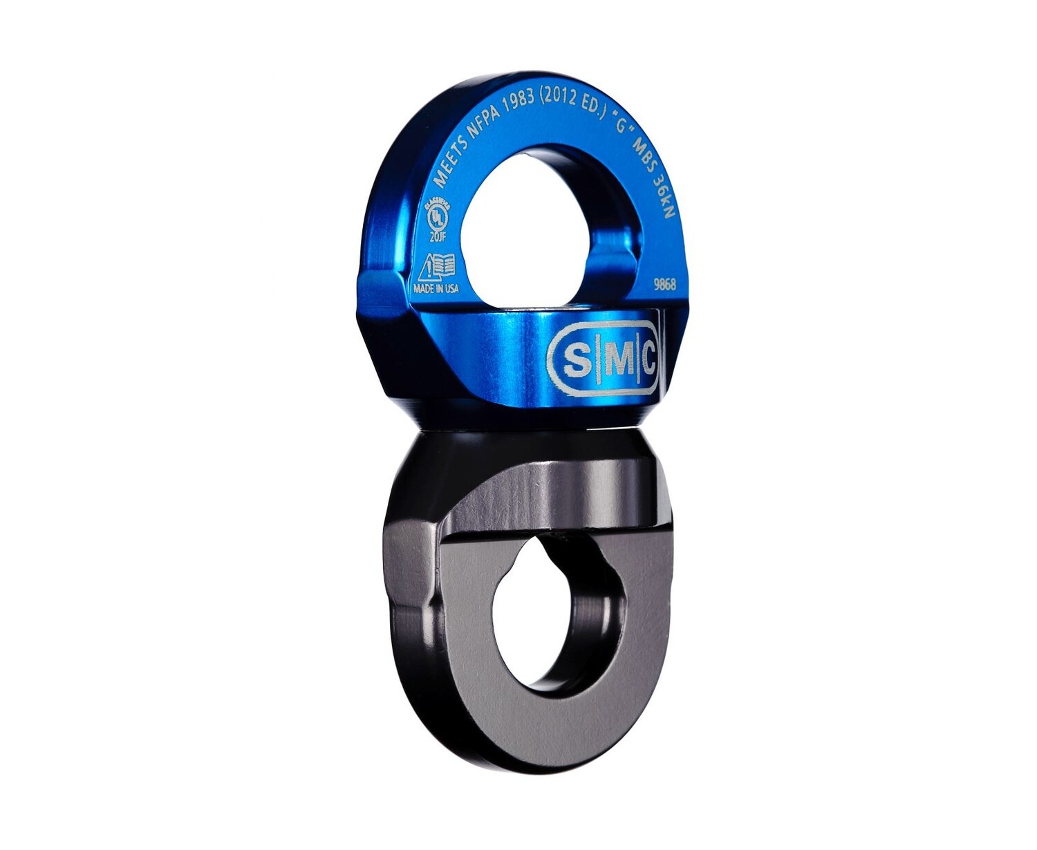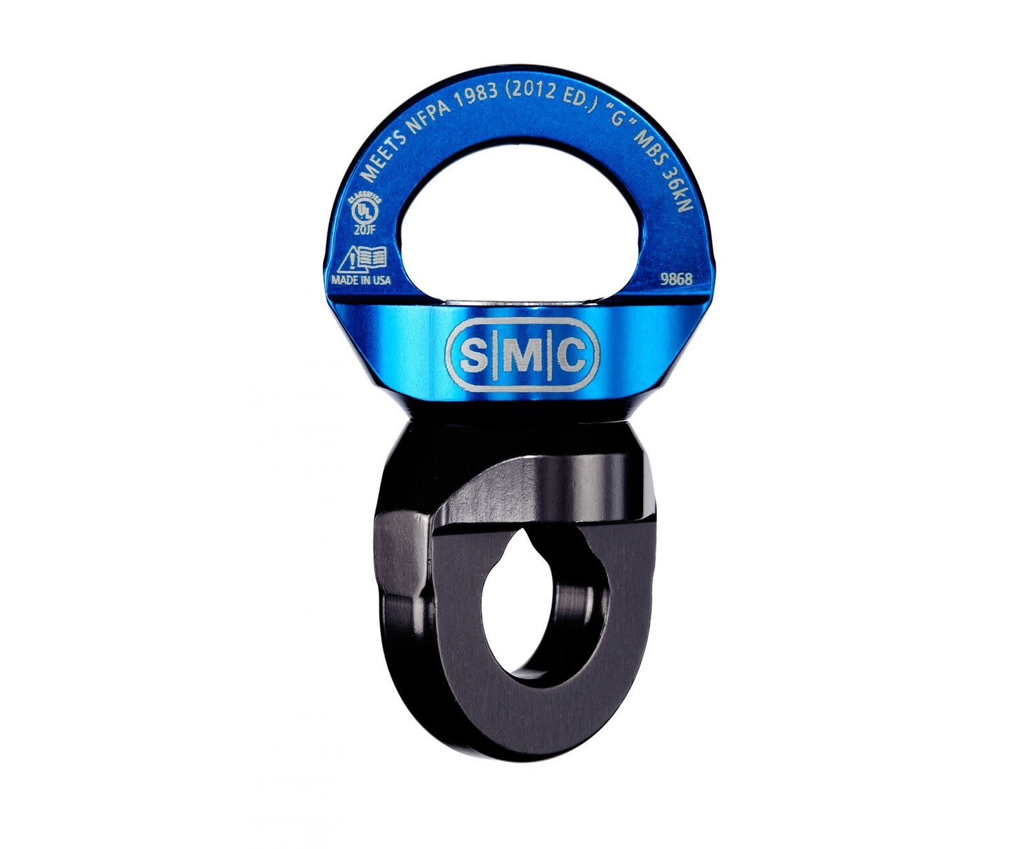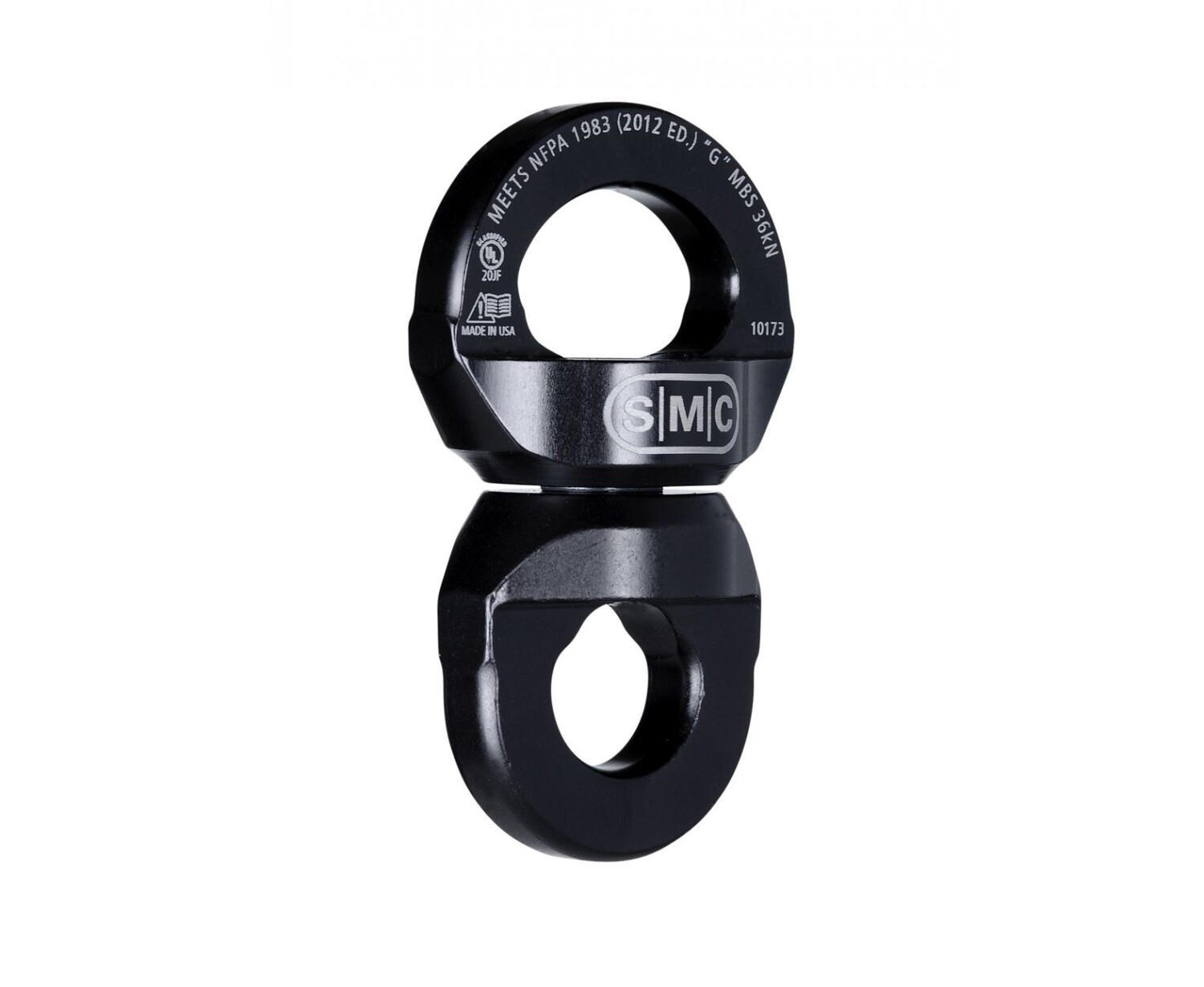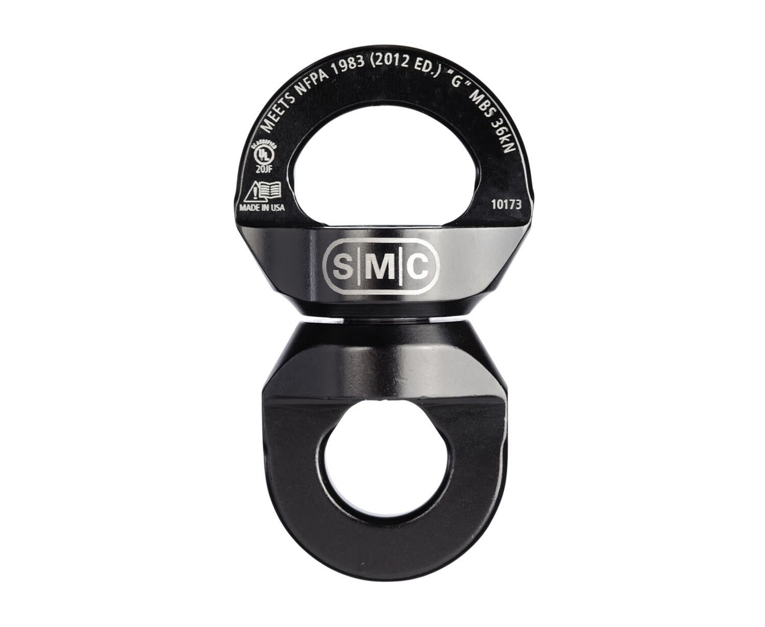 The SMC Rescue Swivel is built around a heat-treated steel axle and a sealed high efficiency ball-bearing to ensure flawless rotation during even prolonged and difficult raises in severe rock, mountain and rescue conditions. The holes are sized to work with rescue carabiners, and allow carabiner lock sleeves to pass through without hanging up. As one of the most compact swivels on the market, it is ideal for confined space rescue and other awkward hauling situations. The sides are smooth and rounded, helping to prevent hanging up on rocks, litters, or other components or structures. All SMC NFPA products are third party tested (by Underwriters Laboratories - UL) as required by NFPA 1983 standards.