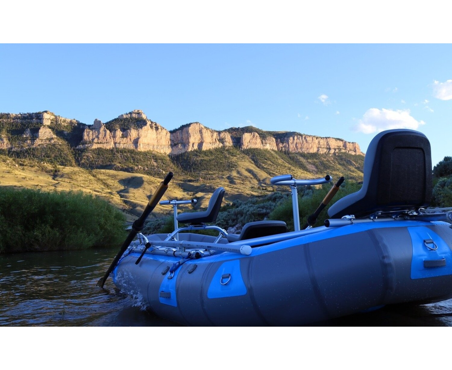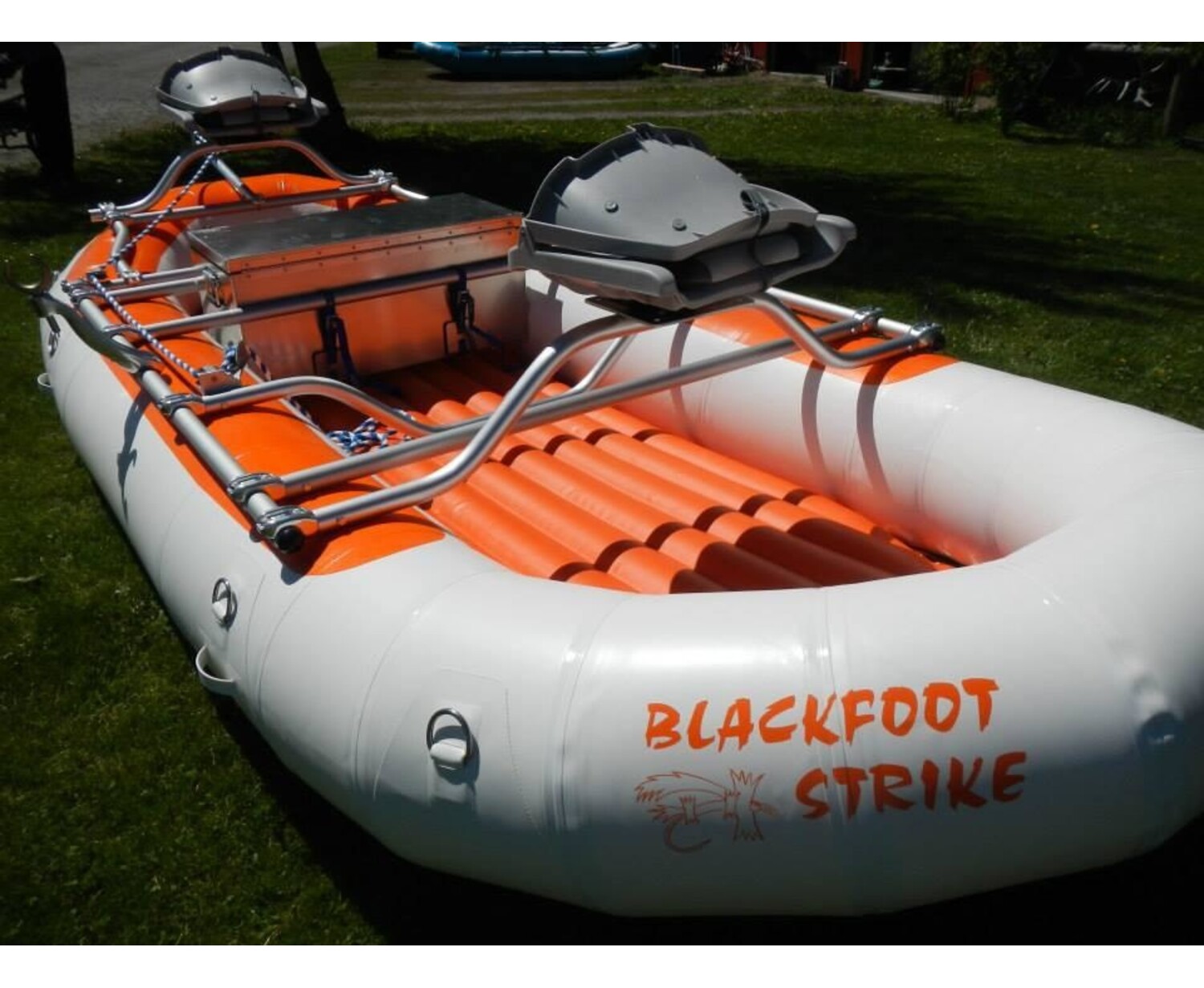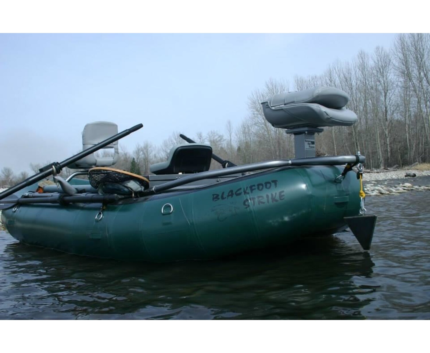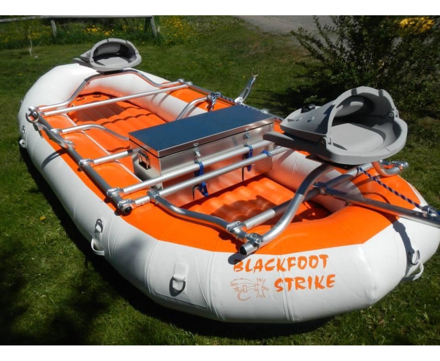 The SOTAR Strike has evolved over the years from our SS model raft which was designed with the fisherman in mind. This is our ultimate fishing boat which we have been custom building for John Herzer with Blackfoot River Outfitters since 1984. Strikes come standard with two air chambers in the main outside tube, a welded I beam floor, standard 10 outside d-rings and 6 carry handles, patch kit and boat bag. Top chafe, thwarts, extra D-rings and other options are available on request. At SOTAR we design and build all inflatables by hand and one at a time.