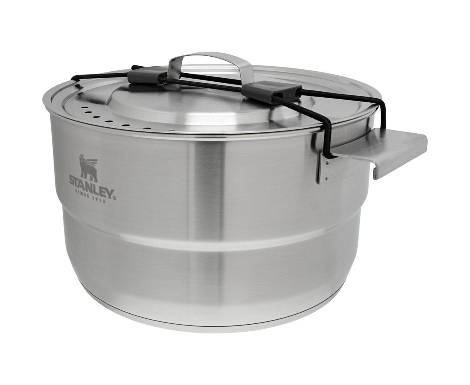 CloseFor crispy breakfast taters and a fine sear on the day-five filet, the Stanley Adventure Even-Heat Camp Pro Cook Set is made for outdoorsy chefs. Nesting design creates an easy-to-pack system.