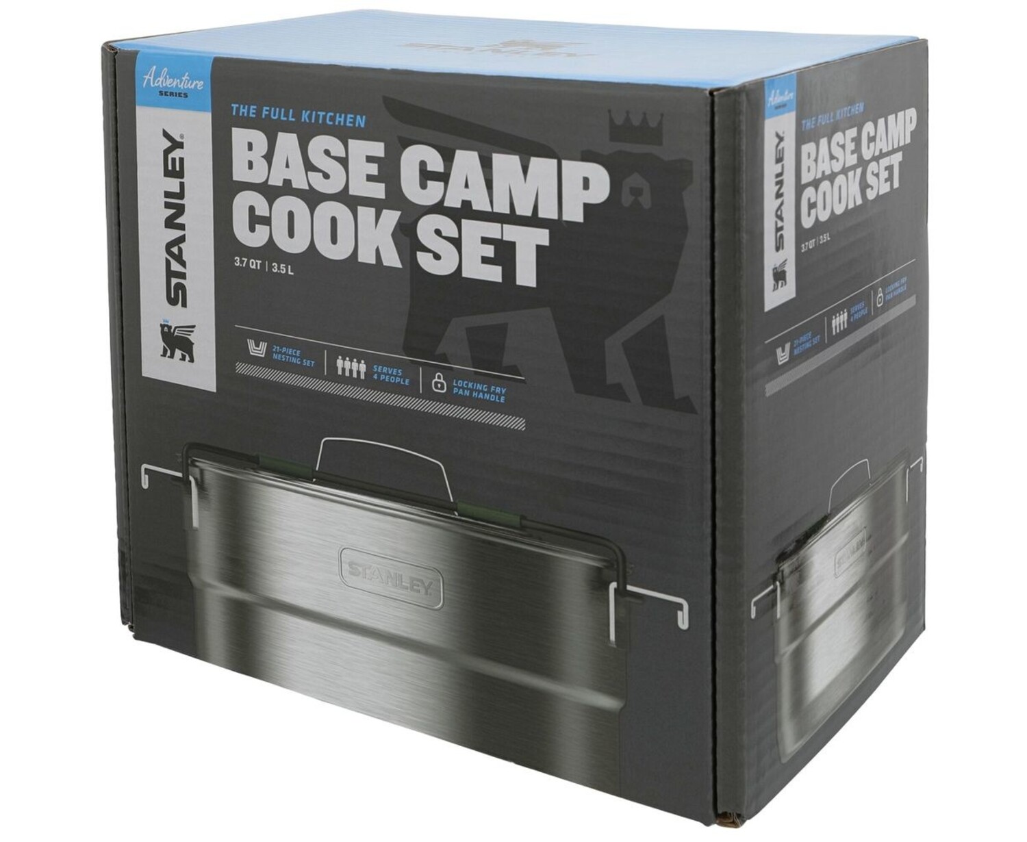 CloseThe Stanley Adventure Full Kitchen Base Camp Cook Set is a 19-piece, nesting bundle of camp chef necessities perfect for your van down by the river, your self-support paddling expedition or your family-of-four car-camping adventures.
