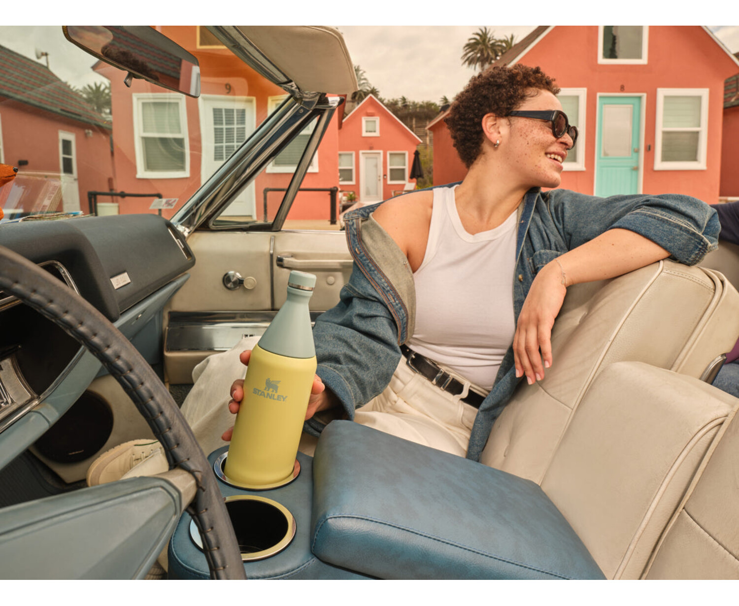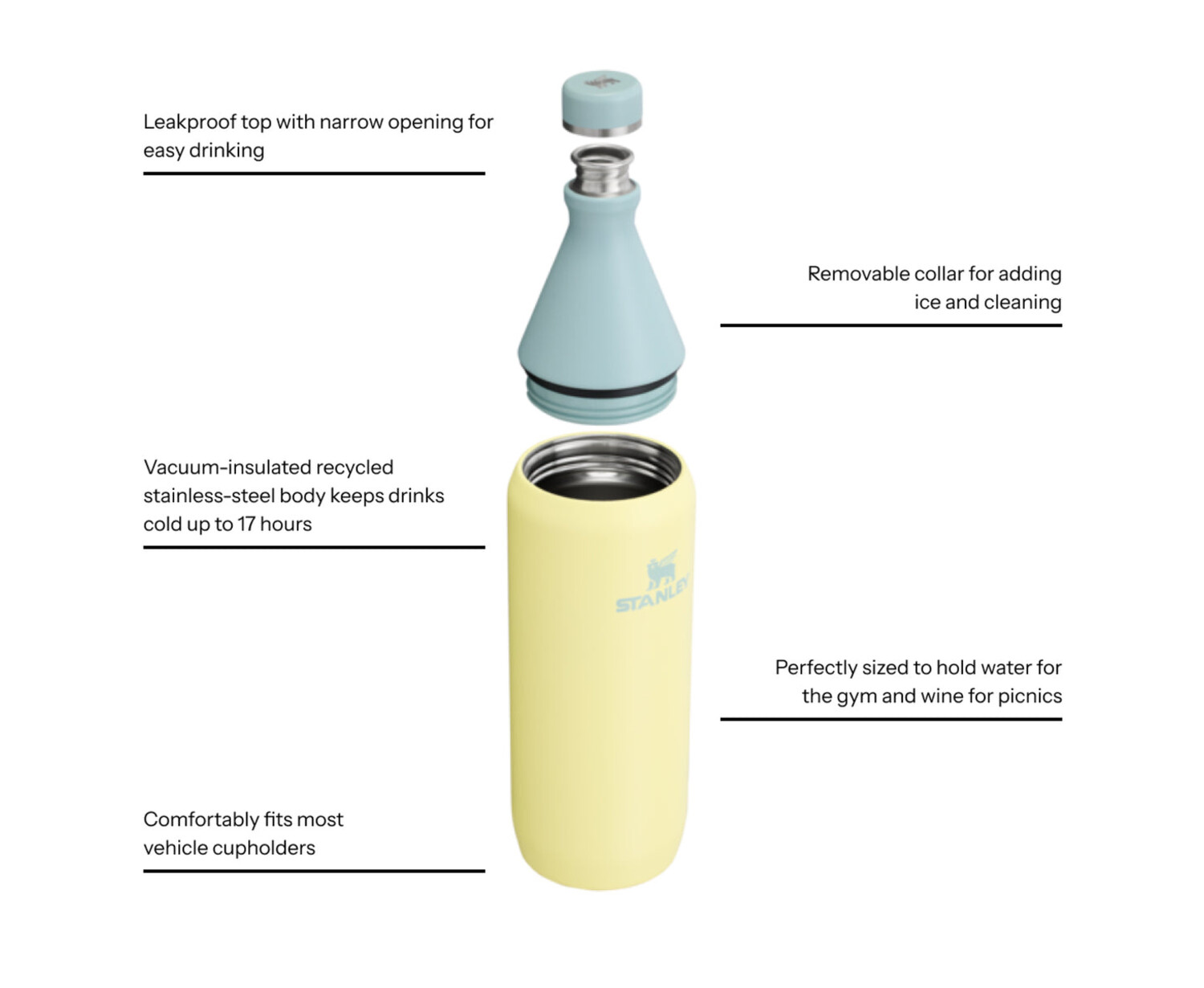Single-use plastics can take a hike. With an iconic shape, the slim design makes it easy to pack. This water bottle uniquely opens at the shoulder so you can fill it up with ice and stay refreshed. The 34-ounce All Day Slim Bottle is sustainable, if not slightly unexpected. Just give the collar a few twists to shut for a leakproof seal and uncap whenever you need a drink. Stainless steel construction provides ice-cold sips for hours. It can even hold an entire bottle of wine! Whether it lives next to your beach tote, or becomes your in-flight favorite, keep hydration simple.