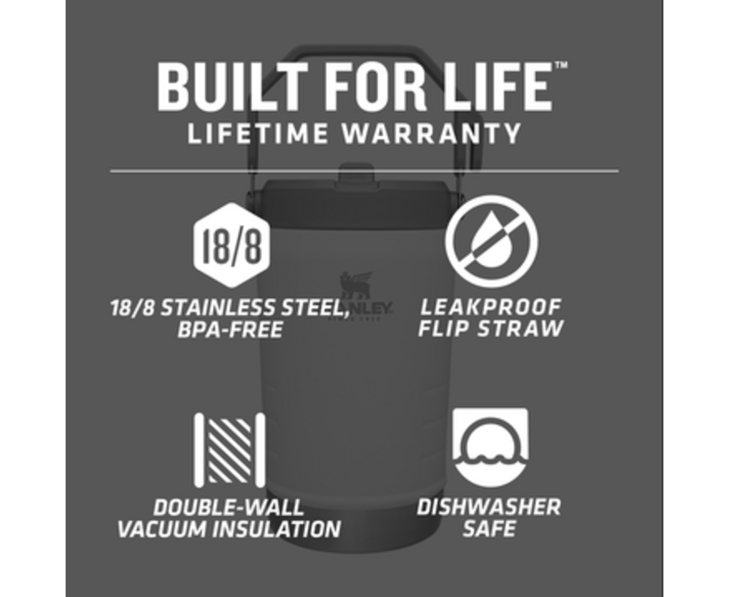 Great for beach days, long practice sessions, or even road trip adventures. This jug acts as your own personal hydration gear with a built-in straw that flips up for clean, fresh sipping. The double-wall vacuum insulation keeps the cold in longer. Take it where you need to go—the rugged handle and built-in fence hook also provide portability and convenience. To help you live a sustainable lifestyle, IceFlow Jugs are made in part from recycled plastics sourced from discarded fishing nets, sparing our waters of plastic waste. Stanley prevents nearly 100 pounds of waste from entering our waters per every 1,000 IceFlow Jugs manufactured.