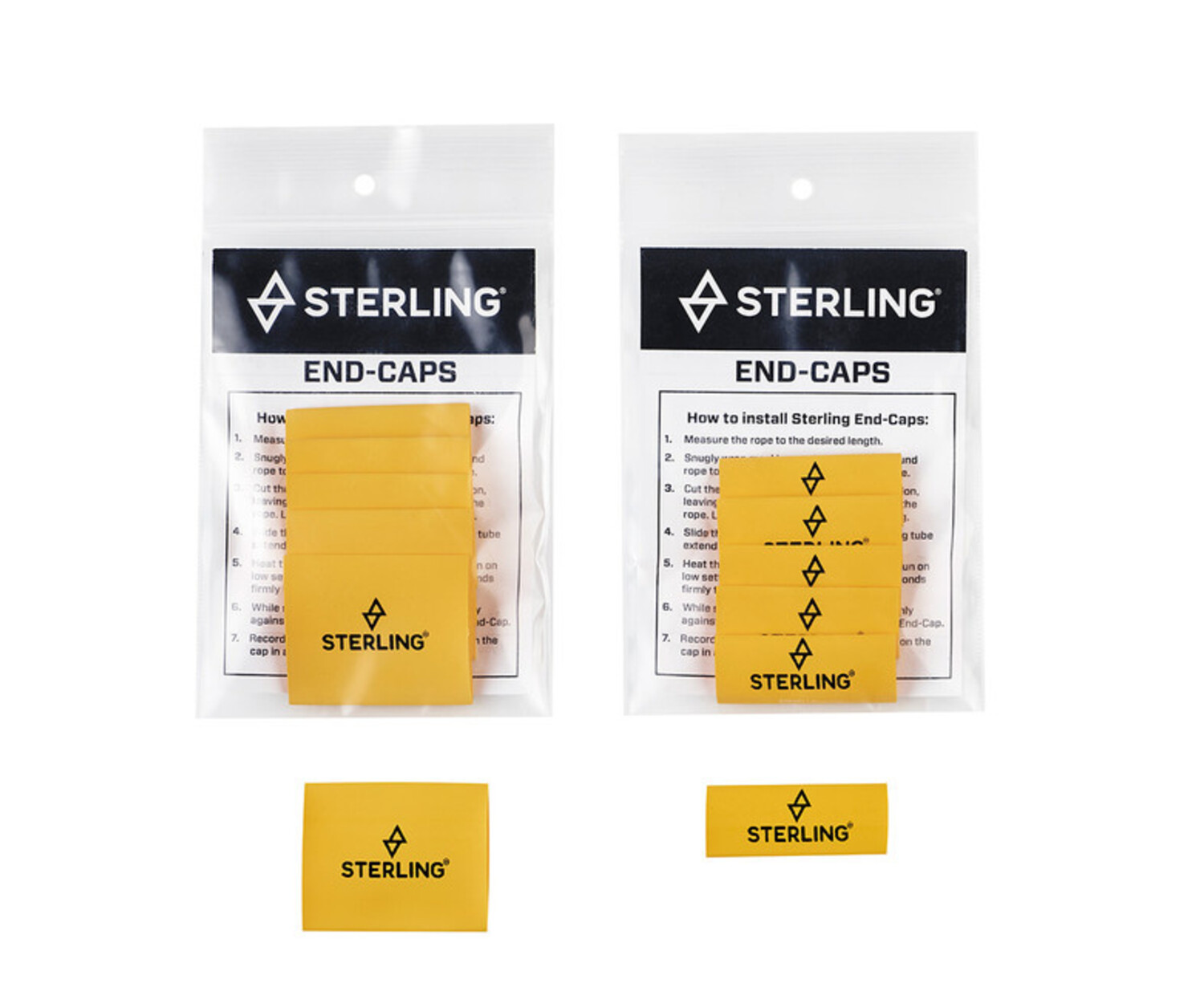 These are replacement heat-shrink tubes to re-label your rope after you cut the ends. Each packet comes with glue instructions for application. You can also write on the tubes with permanent marker to keep track of length and lot number from the original label. Comes in three sizes, in packets of 6. Source of heat not included.