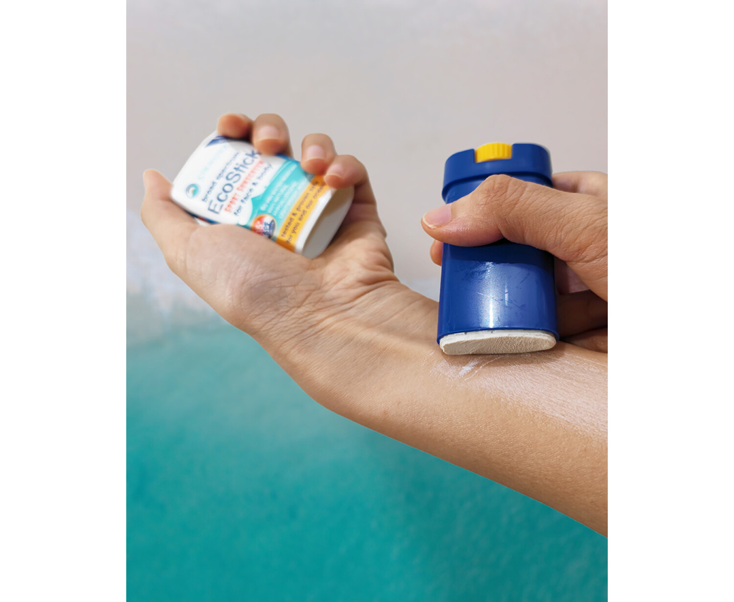 A SUNSCREEN THAT KEEPS UP WITH YOUR WILDEST ADVENTURES! EcoStick Sunscreen Sport for Face and Body SPF 35+ is a high performance reef safe mineral-based sunscreen which protects your body while preserving the ecosystems you love.