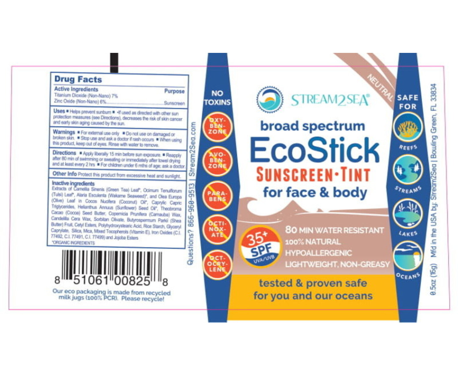 Neutral Tint blends in with most skin tones! EcoStick Sunscreen Tint for Face and Body SPF 35+ is a high-performance reef safe mineral-based sunscreen which protects your body while preserving the ecosystems you love.
