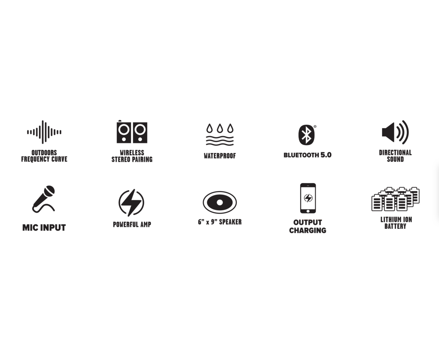 Specially designed large rubber feet on the bottom AND rubber feet on the back allow you to lay the Turtlebox on it’s back—speaker face up, for extreme stability.