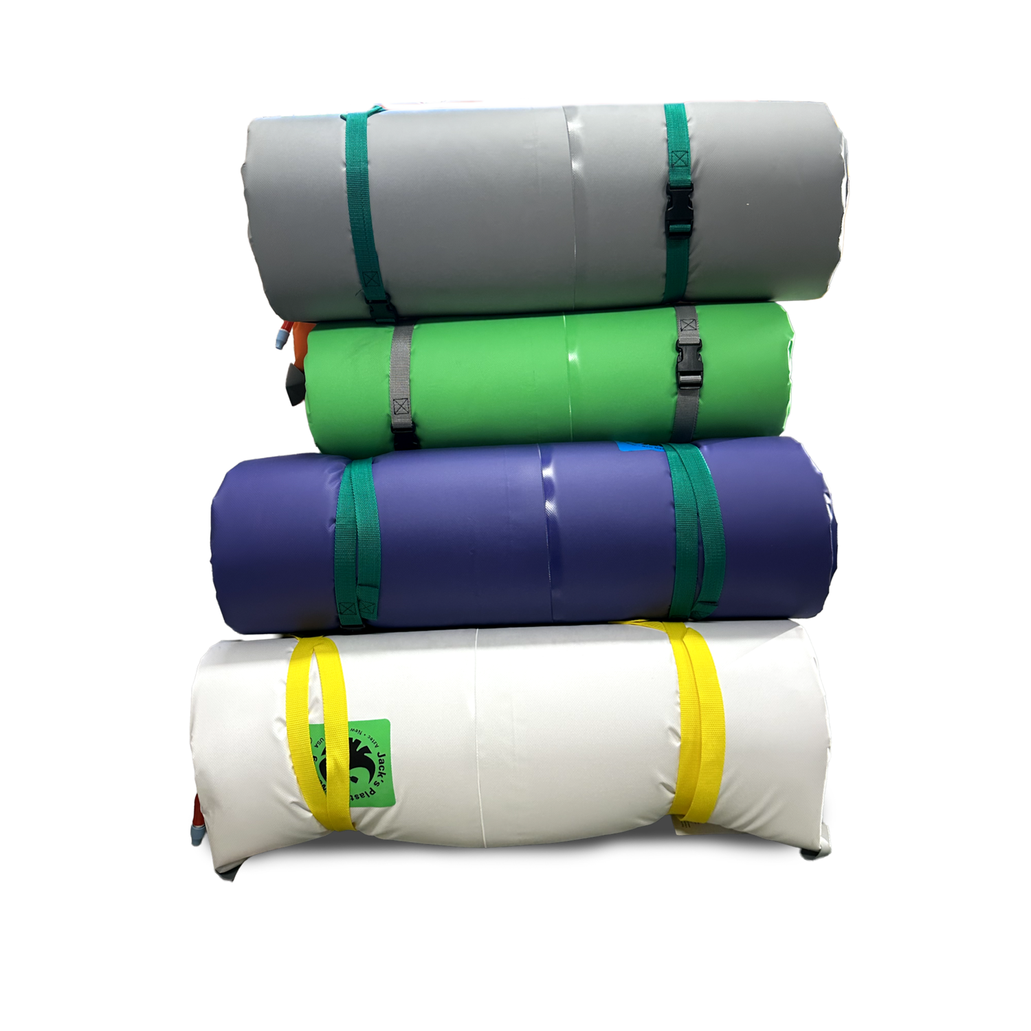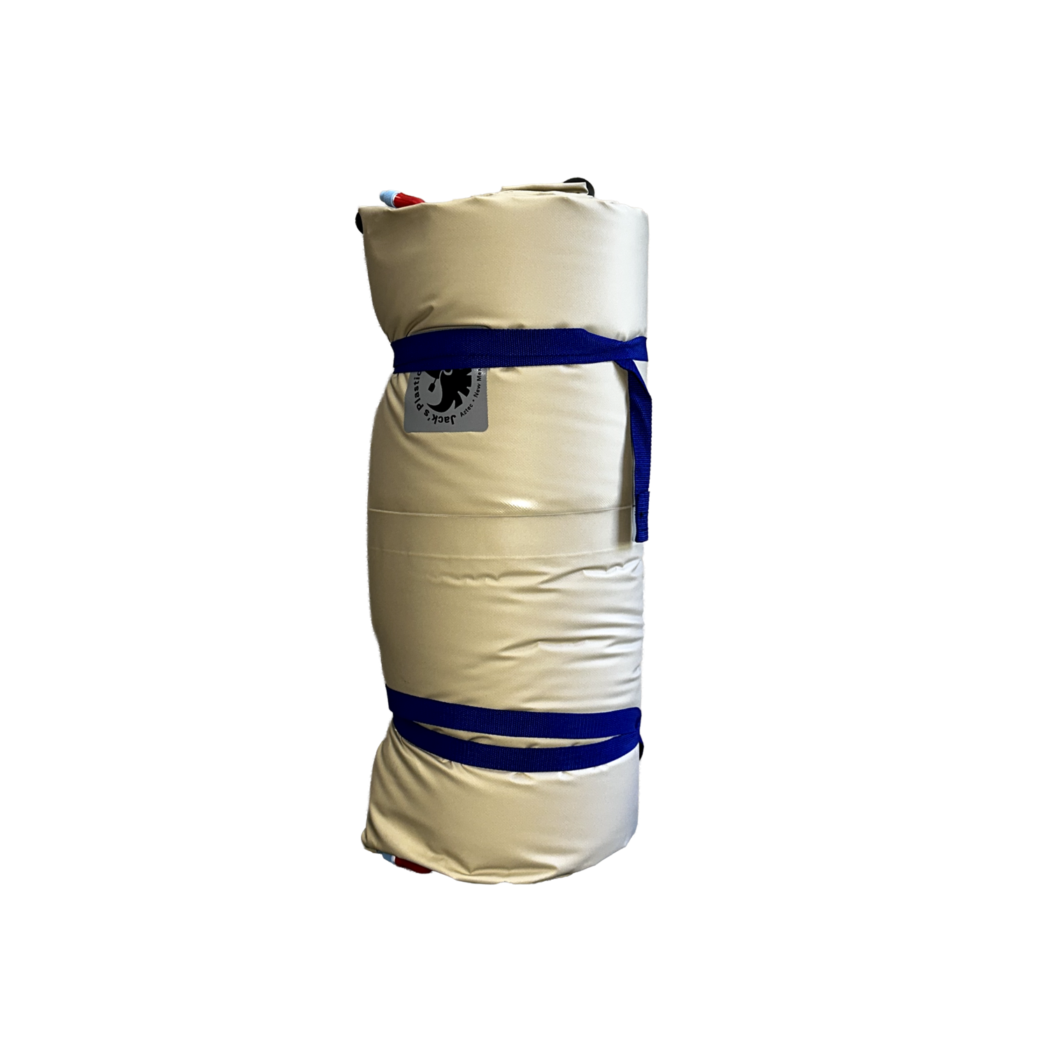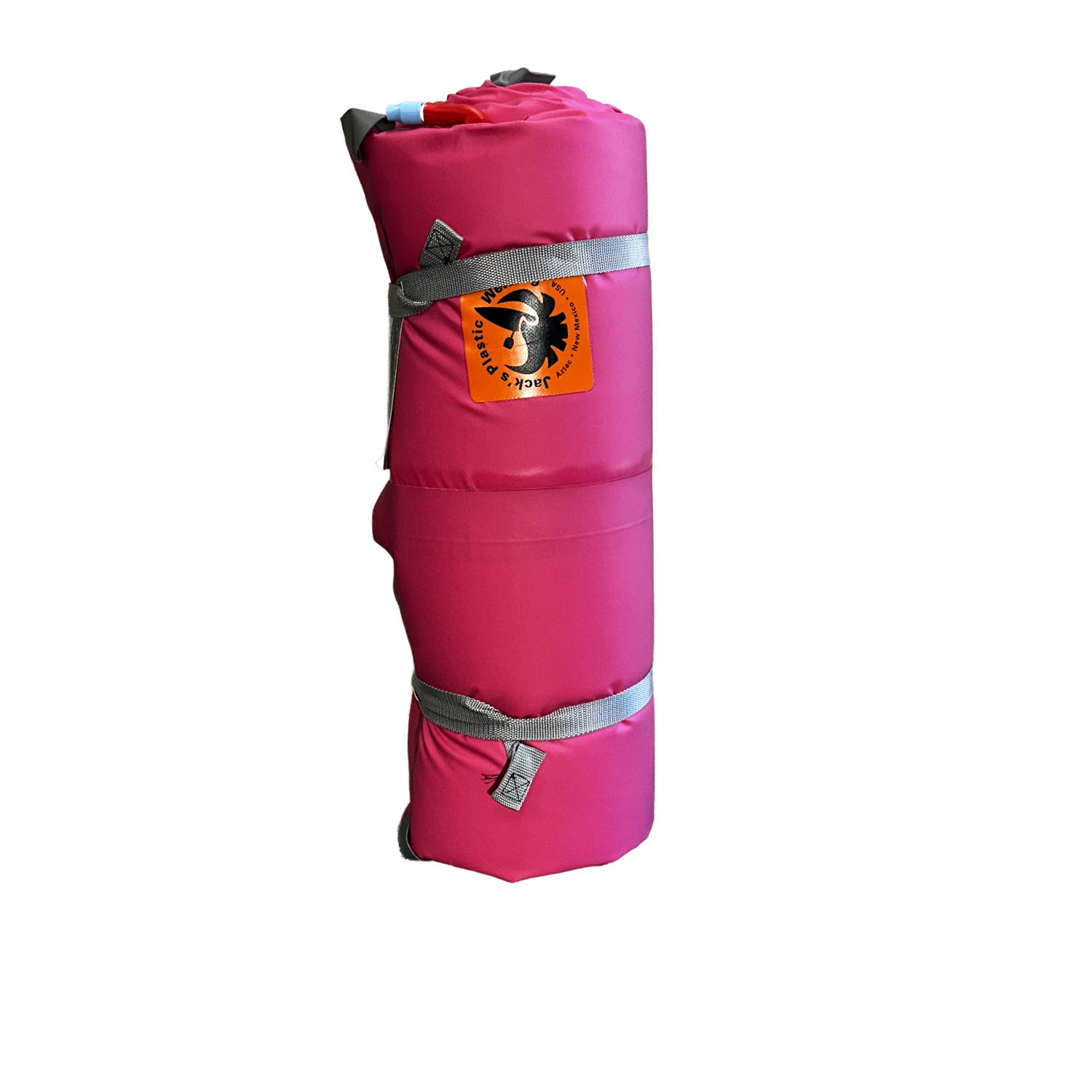 Each Paco Pad has a water tight air valve that will allow you to roll it up and keep the air from getting inside. When you want to go to bed, simply pop the buckles to release the straps, and open the valve. The Pad will inflate itself. It needs no extra air to make it work and a small puncture from a cactus needle or a valve left open will not affect a successful night of sleeping. The foam in a large pad is extra dense and firm. The density of the foam allows the pad to be rolled up many times without breaking down the foam inside. The firmness assures that your hips and shoulders will not touch the ground, and will provide excellent insulation against the cold.