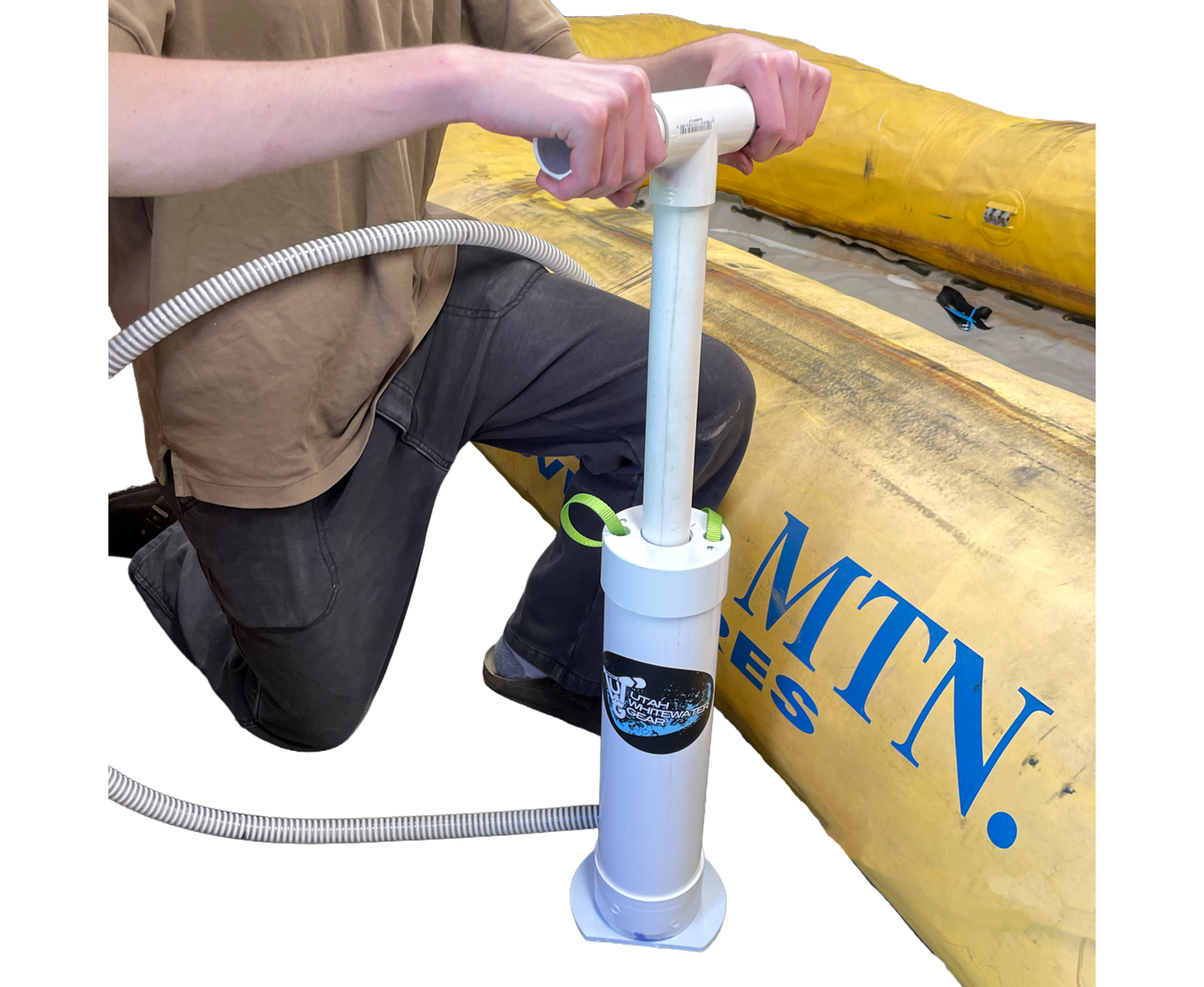 Each pump includes a 6' kink‑free hose that stays flexible and easy to maneuver, even in cold weather. A lube‑free foam O‑ring system ensures clean, maintenance‑friendly operation—no grease required. Every pump includes a spare O‑ring stored inside the barrel, and replacement O‑rings are available from Utah Whitewater Gear for long‑term serviceability.