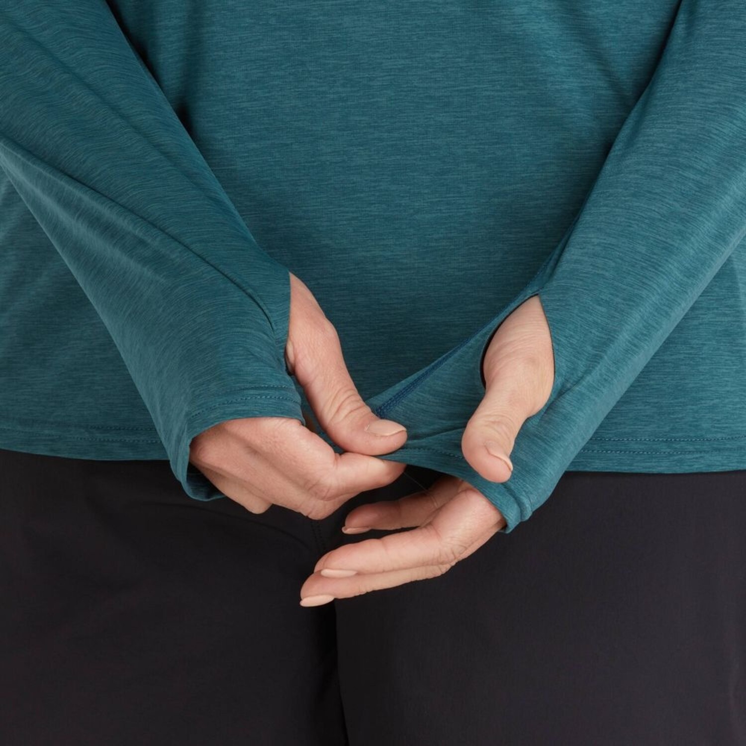 - Laser-cut thumbholes extend sun protection to the tops of your hands without adding unnecessary bulk to the cuffs.
