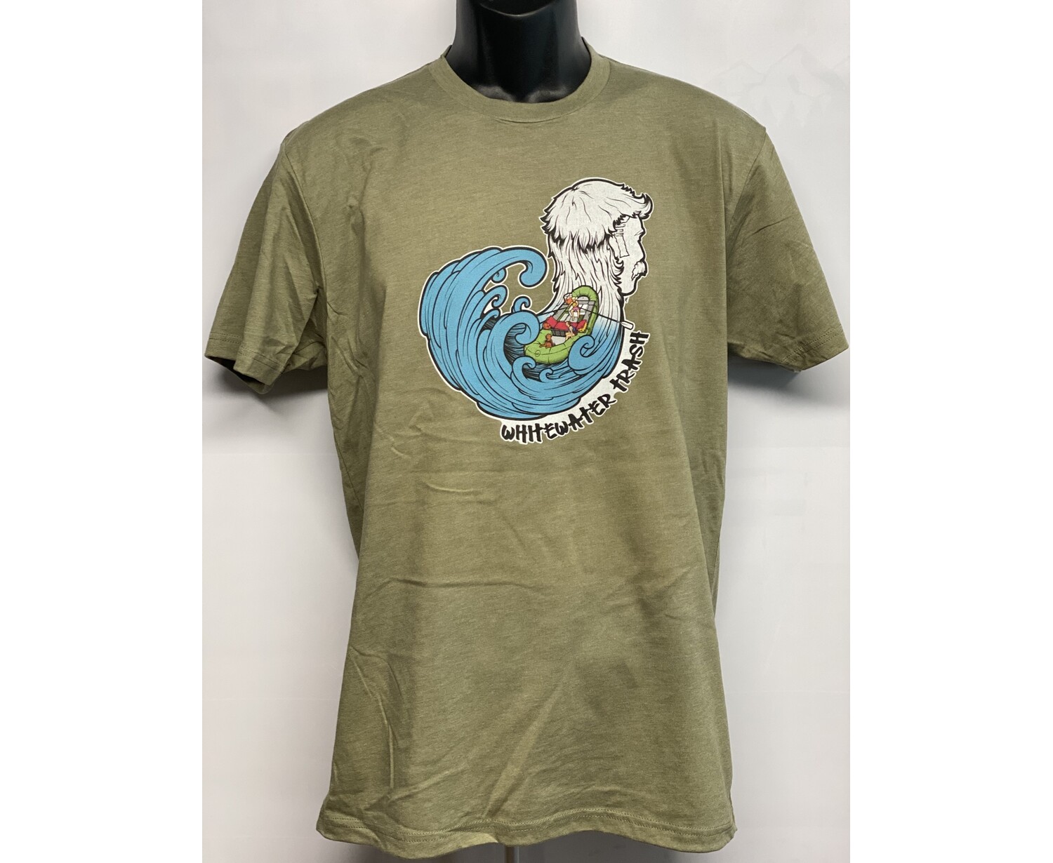The trademark design is on a crew neck t-shirt. This relaxed-fit short-sleeve t-shirt is fabric laundered 60/40 combed ringspun cotton/polyester made of 32 singles with a set-in 1x1 baby rib collar and tear away label.