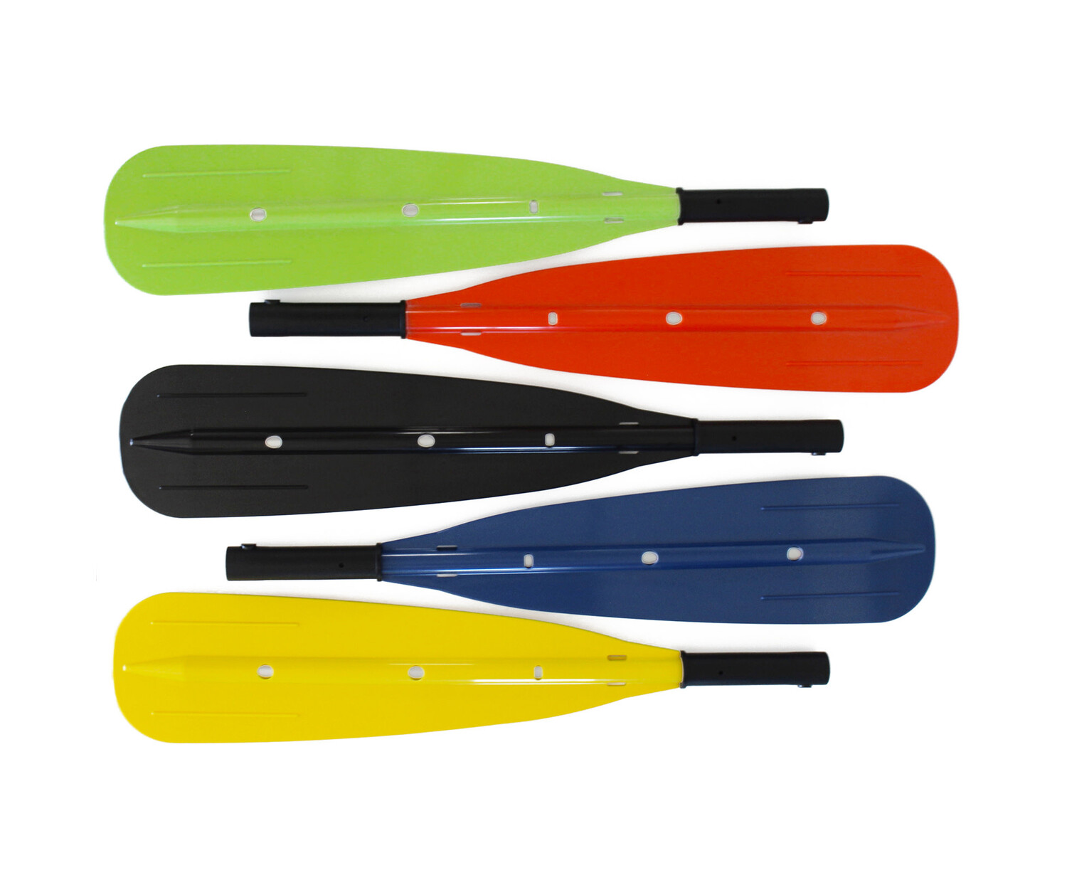 Oar Blades of every color. Brighten up your rig with these Fiberglass reinforced ABS Oar Blades. Match them to your boat or use them to spice up your oar setup with these strong quality blades. Made with an aluminum spine and push button that will fit most oar shafts.