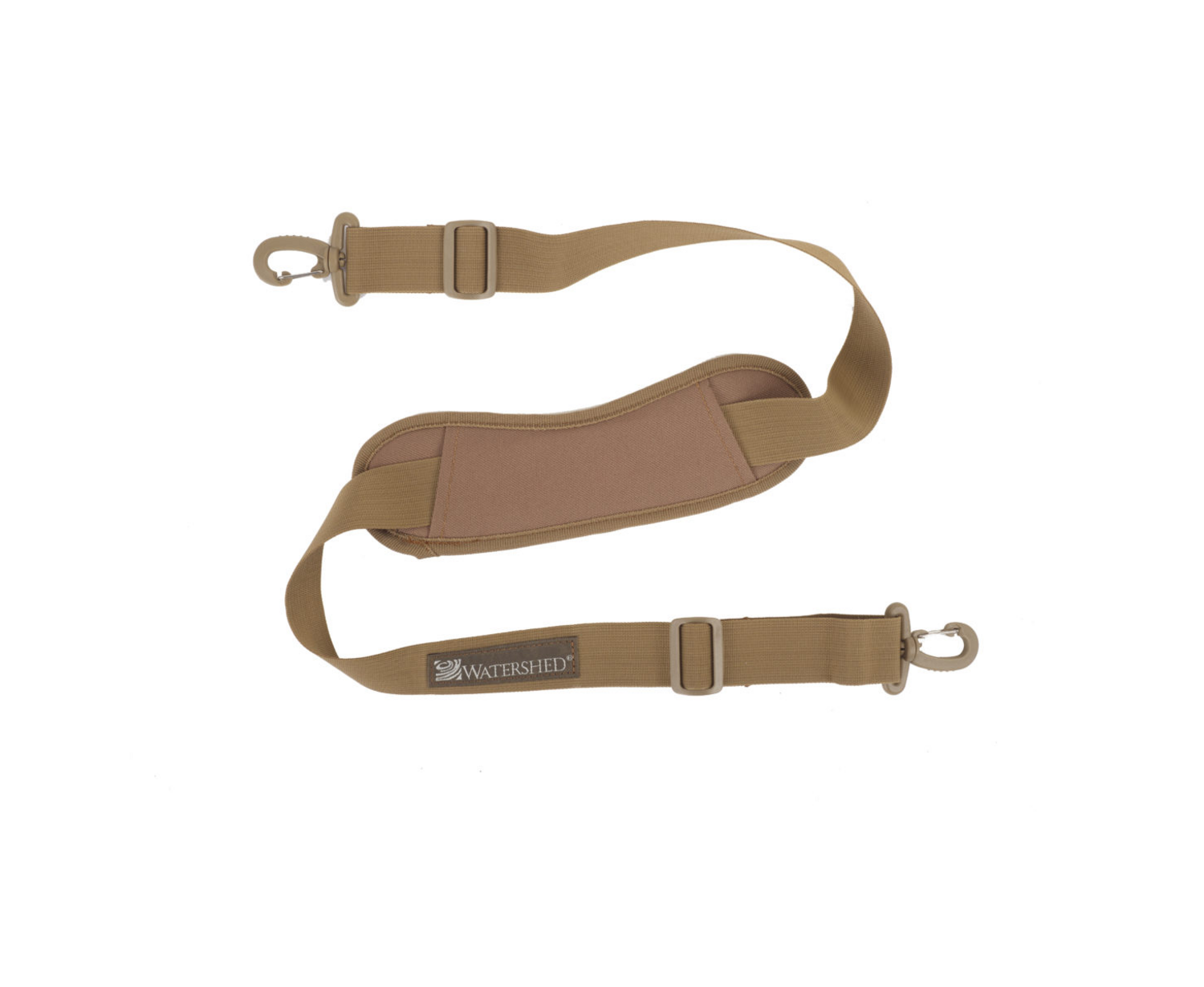 Adjustable shoulder strap featuring heavy-duty 1.5″ nylon webbing, cordura, closed-cell foam pad, and Duraflex swivel snaphook.