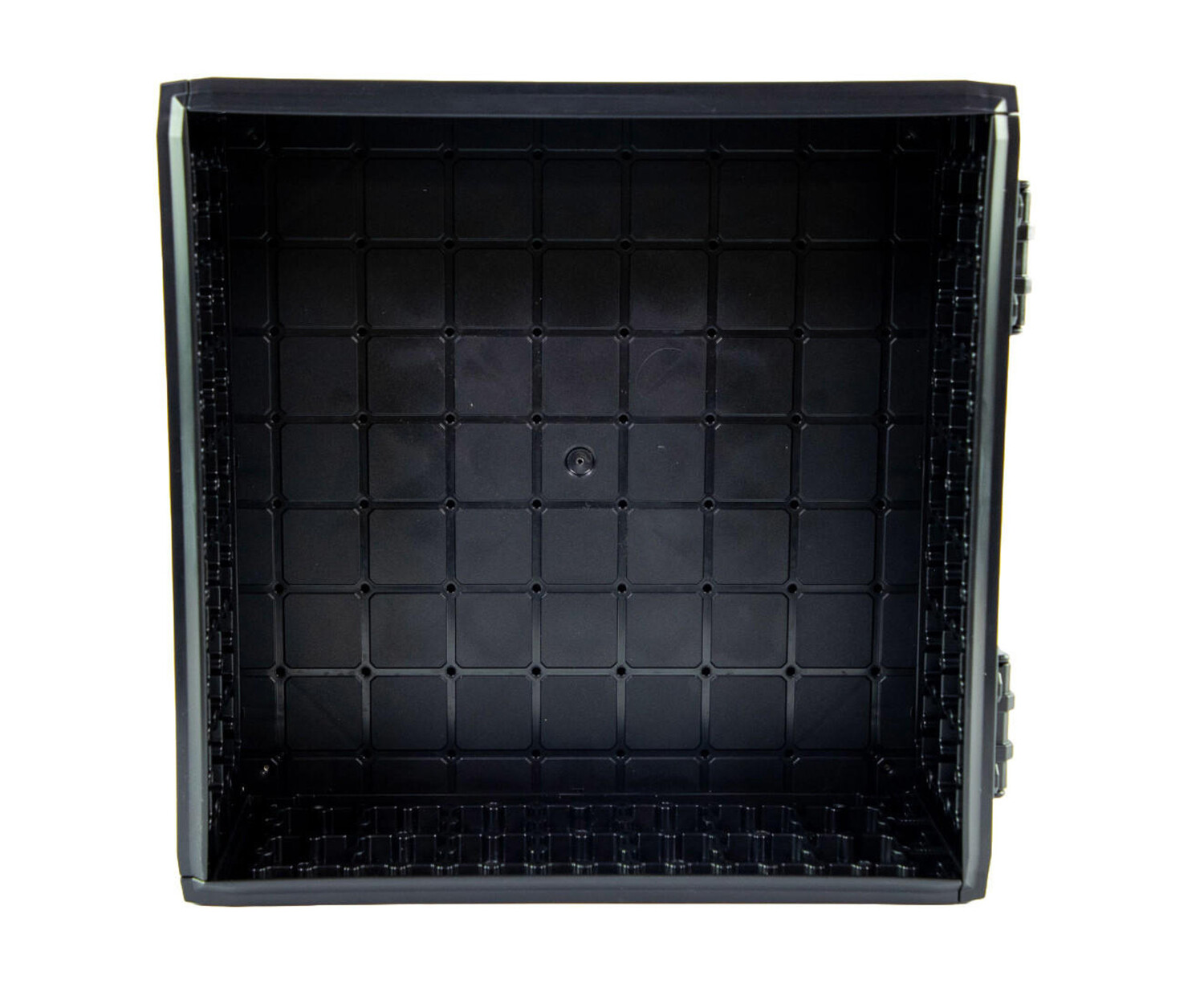 The design of the ShortStak inherits many of the same features found on the BlackPak Pro. From lightweight injection molded parts and tongue and groove assembly, to the GridLoc mounting platform found inside and outside the crate, making it obvious they were made for each other. An addition of heavy-duty hinges and support straps were critical to restrict any overtravel of the larger top compartment to prevent damage to your BlackPak. Overall, the length and width dimensions of the ShortStak will match the corresponding BlackPak. The interior depth of the ShortStak will be 4.25 inches across all three sizes.