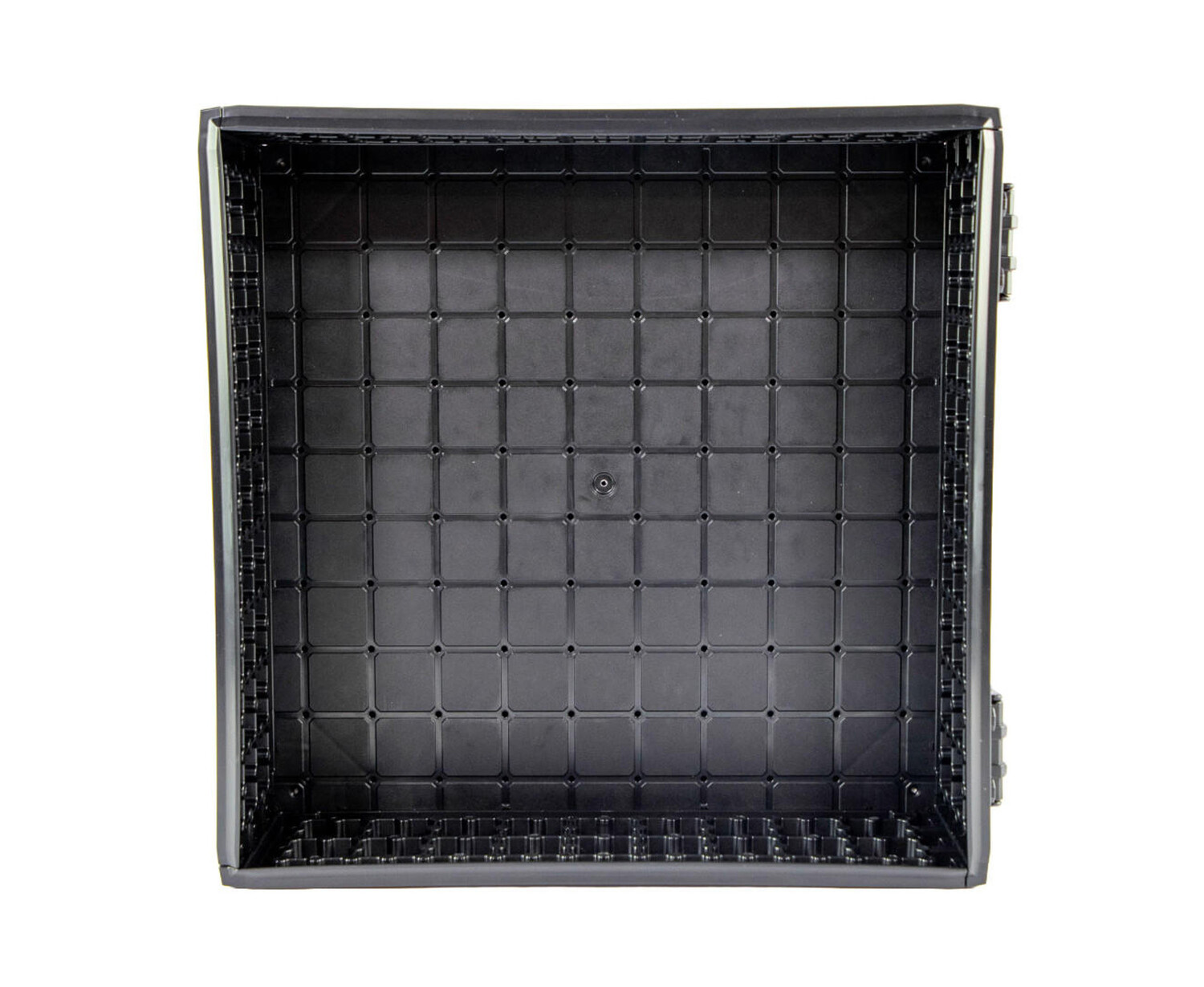 The design of the ShortStak inherits many of the same features found on the BlackPak Pro. From lightweight injection molded parts and tongue and groove assembly, to the GridLoc mounting platform found inside and outside the crate, making it obvious they were made for each other. An addition of heavy-duty hinges and support straps were critical to restrict any overtravel of the larger top compartment to prevent damage to your BlackPak. Overall, the length and width dimensions of the ShortStak will match the corresponding BlackPak. The interior depth of the ShortStak will be 4.25 inches across all three sizes.