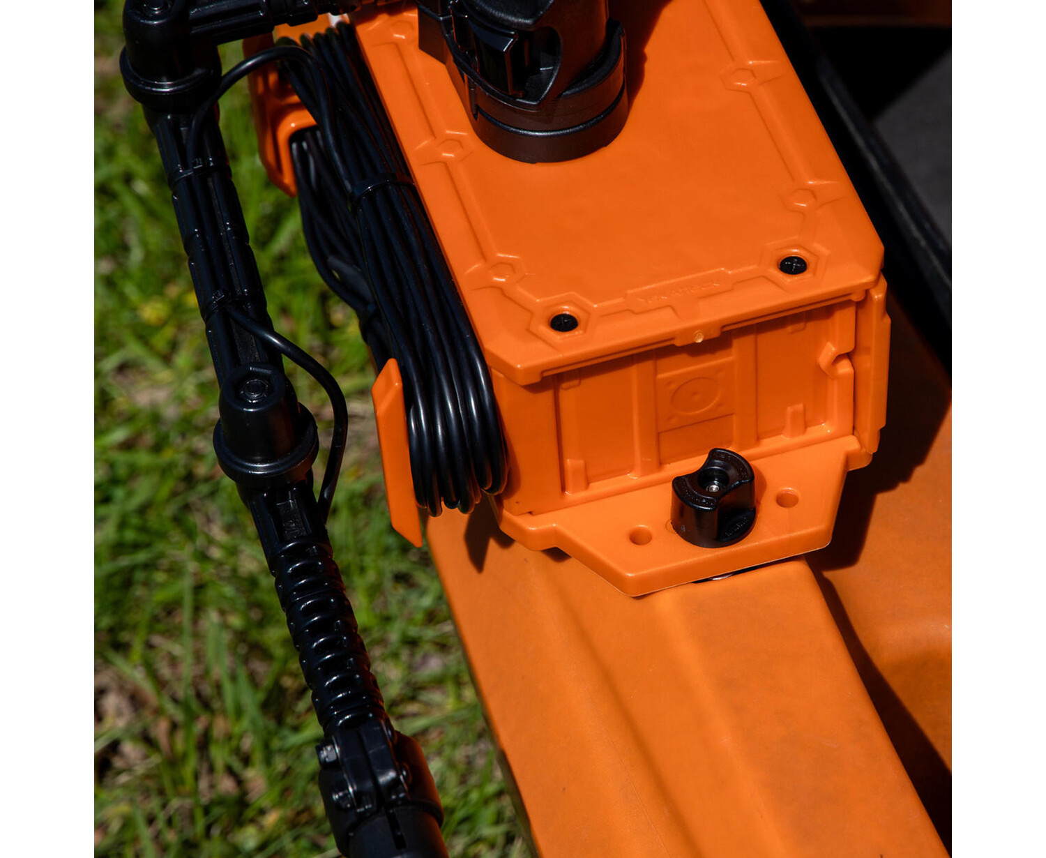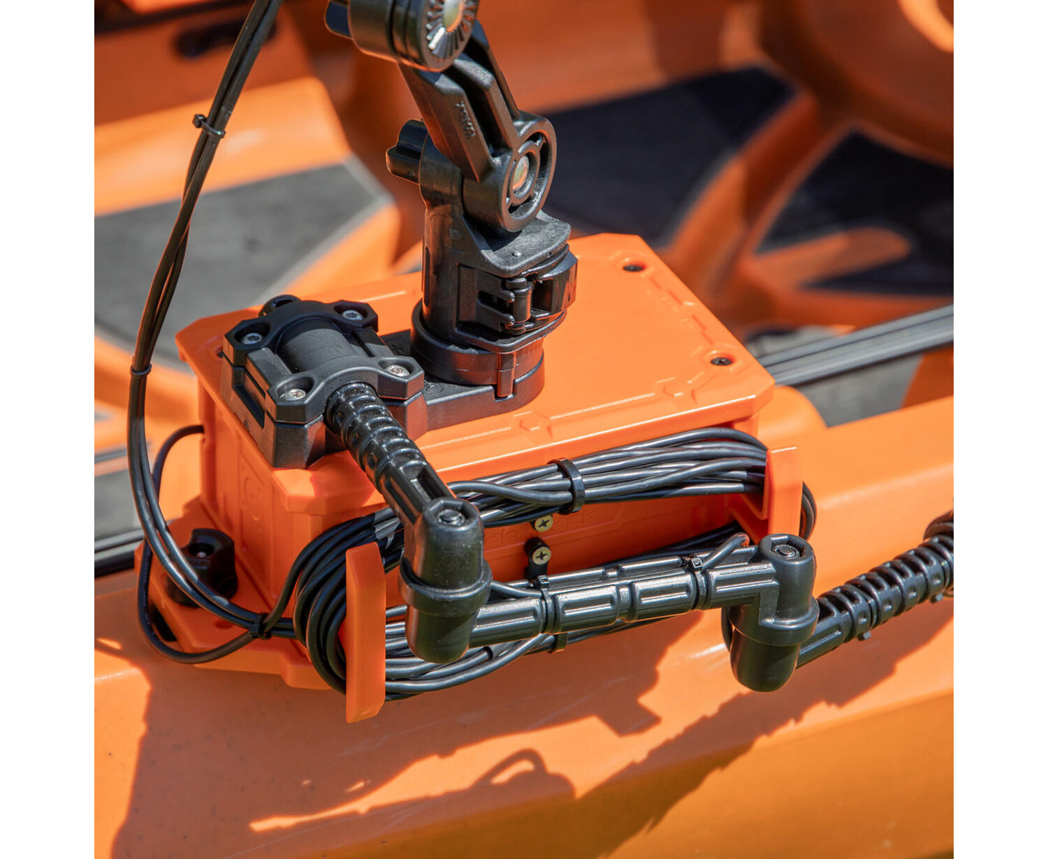 Depthfinder installation on kayaks just got smarter. The YakAttack CellBlok is a track mounted battery box and its top surface serves as a mounting platform for the YakAttack SwitchBlade Transducer Arm and YakAttack fish finder mount. No more drilling holes in your kayak or routing wires! Simply loosen the two track mount knobs and the CellBlok allows you to quickly and easily attach or remove your depthfinder. A minimum of 10.5" of track is required to attach the CellBlok. This updated version of the CellBlok was new for fall 2020 and features an injection molded construction compared to the original model. The change in material has resulted in a 25% weight reduction (now 1.4 lbs) and we also increased the size of the cable wraps to accommodate the larger wires used in today's fish finders.