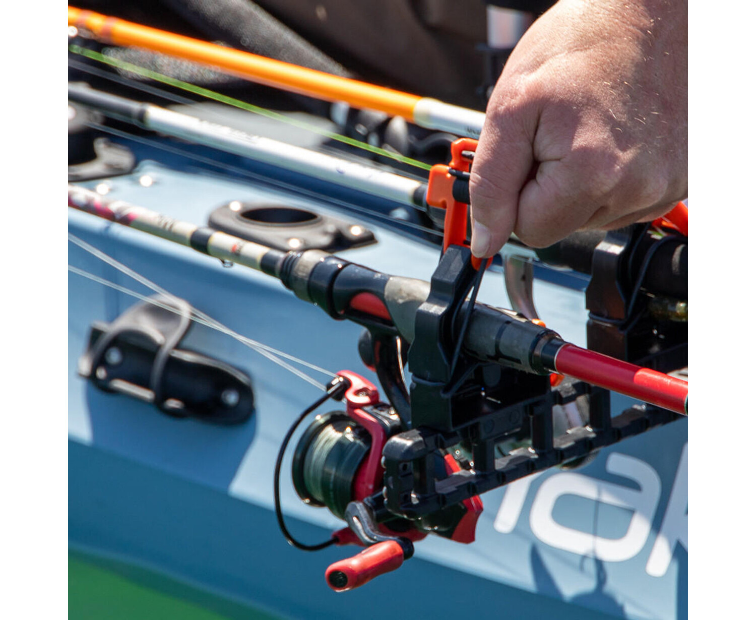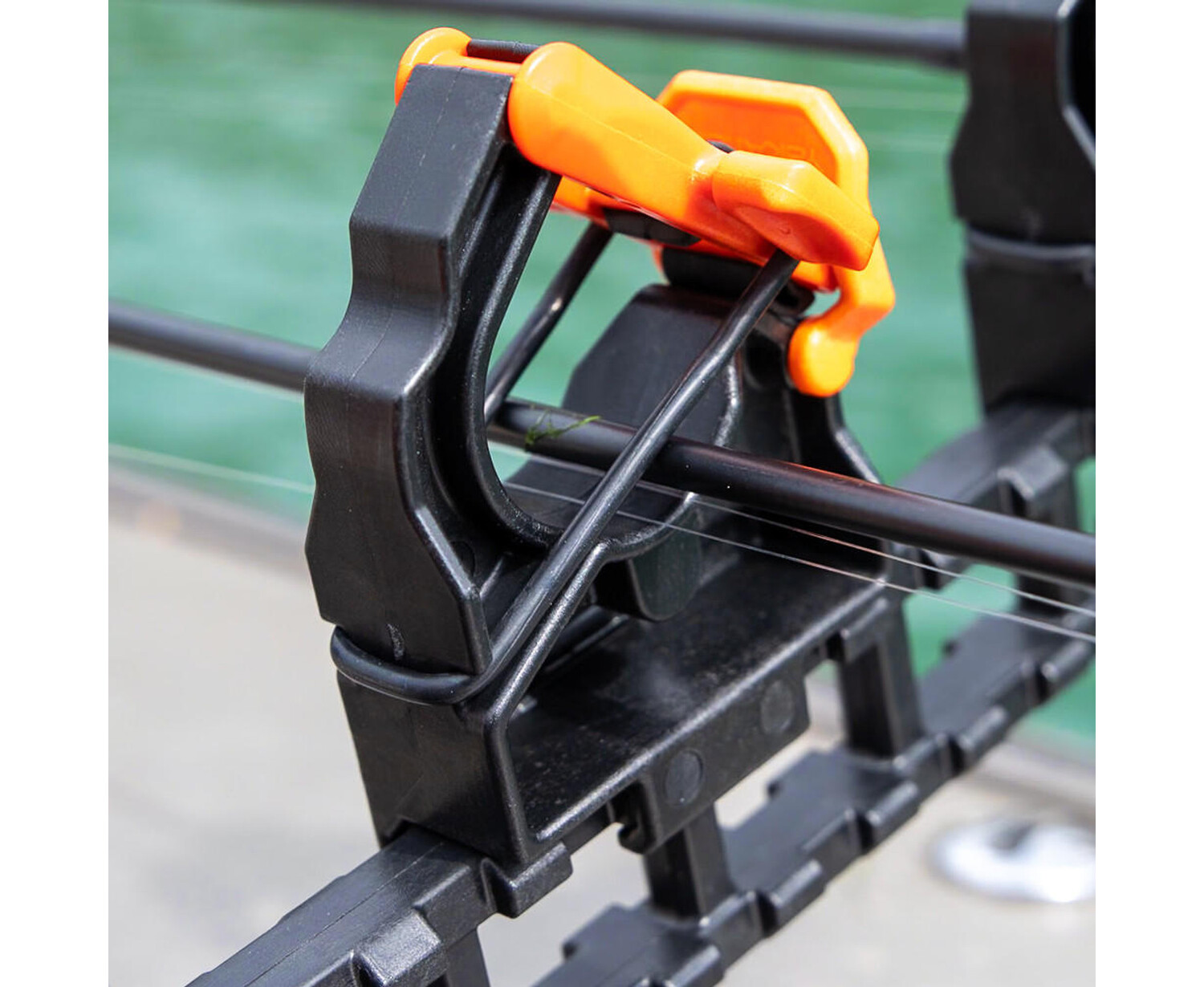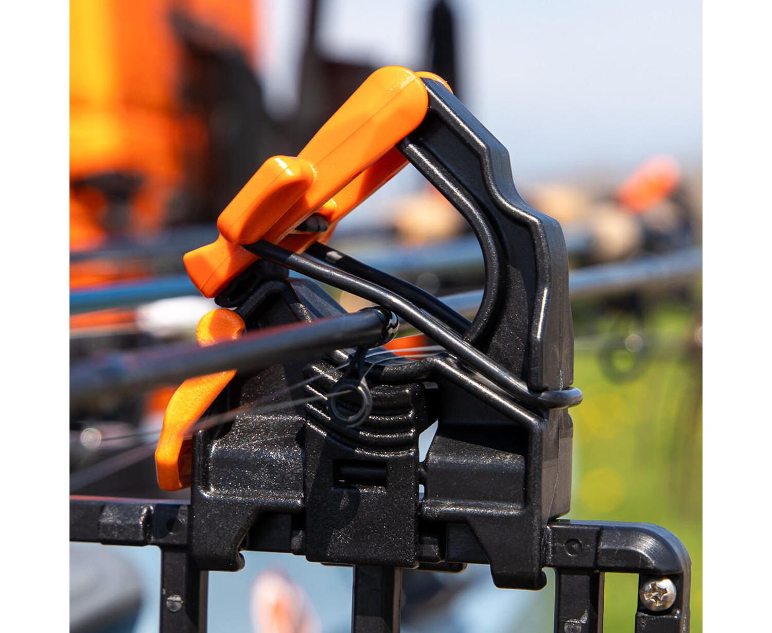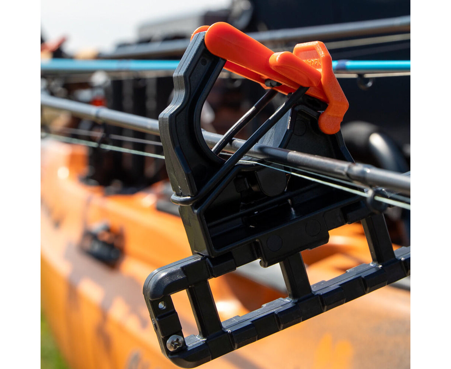 CloseThe FlipGrip is an all-new tool holder that uses a rubber retention band and a cam lever to apply positive pressure to objects of all diameters. Designed primarily for fishing rods, the FlipGrip will also work for paddles and ParkNPoles. The FlipGrip is only compatible with the ClickTrac Rail system. To attach, depress the lever button on the outside of the FlipGrip frame, align the teeth on the bottom of the FlipGrip with the teeth on the top of the ClickTrac Rail, and lower it onto the rail. Slide the FlipGrip along the rail until it locks into place.