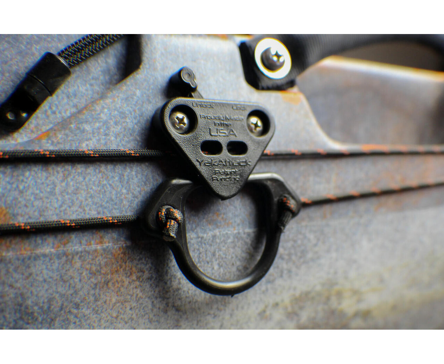 CloseThe first anchor trolley designed specifically for the job, the YakAttack LeverLoc™ Anchor Trolley features a LeverLoc™ line clamp, which locks your trolley line in place with a simple “flip of a switch” motion. Keeping the trolley lines in line is the PadHook, a simple but clever design that combines the functionality of both a pad-eye and a hook, keeping even the tightest trolley lines in place on the side of the kayak, not over your gunwale. When not in use, the easy-knot trolley ring snaps into the base of the LeverLoc™, quietly secured until deployed. Includes 35’ of USA made 550 paracord with a highly reflective tracer. This model features the HD option, which gets you two extra PadHooks plus backing plates for the pulleys and LeverLoc™, enabling a heavy duty install when compared to the self-threading screws included in the standard kit. Features YakAttack Stealth Pulleys for super smooth operation. The use of a YakAttack Rigging Bullet, RB1032, is highly recommend for installs where the install location is out of arms reach.