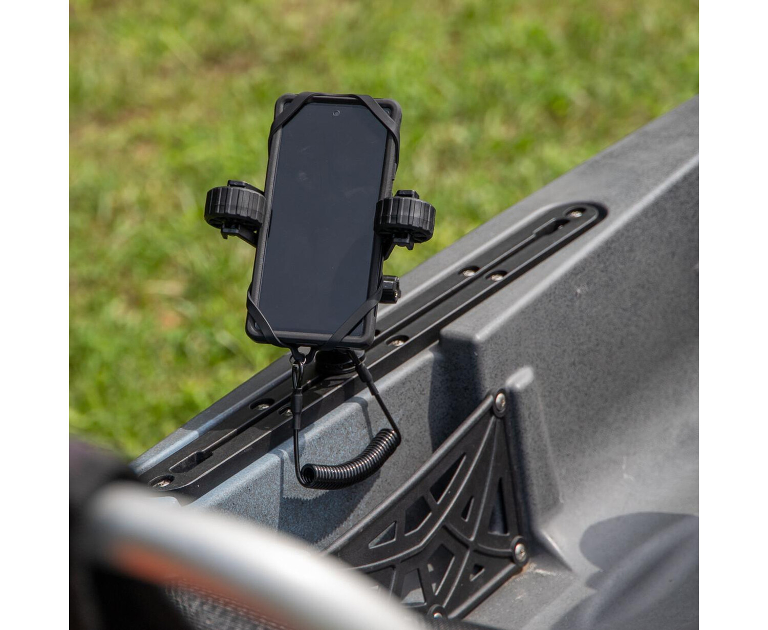 - Phone holder is compatible with 1” ball mounts such as YakAttack, Ram Mounts, and Scotty.