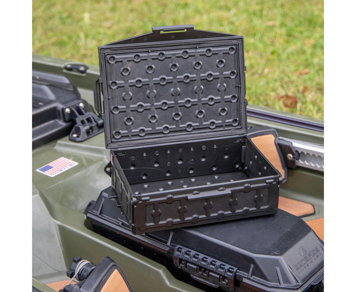 The stackable storage boxes quickly and securely snap onto the base (sold separately) and on top of each other. When two boxes are stacked on top of each other, you have the ability to not only access the top box, but you can access the bottom box. With interior dimensions measuring 8.375” x 5.375” x 2.375”, there are many ways to utilize this secure quick access storage box. From tools to terminal tackle, the TracPack is a unique and handy storage solution for both recreational and kayak anglers. The TracPak is not waterproof or water-tight and does not float, so each storage box features an eyelet if you choose to use a leash for added security. For enhanced organization, included are four white labels. These adhesive labels are designed to fit on the latch of the box and create an area to identify the contents inside using a permanent marker like a Sharpie. Additional TrackPak boxes and the quick release base are also sold separately.