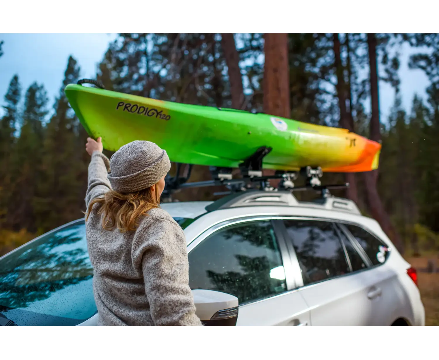 Sold in pairs, it partners awesomely with the new HandRoll rollers or another pair of saddles for a custom set-up. Tool free installation makes it a breeze to attach, SKS Lock Core capability lets you lock your DeckHand to your roof rack for added security, and the universal mount fits just about any roof rack.