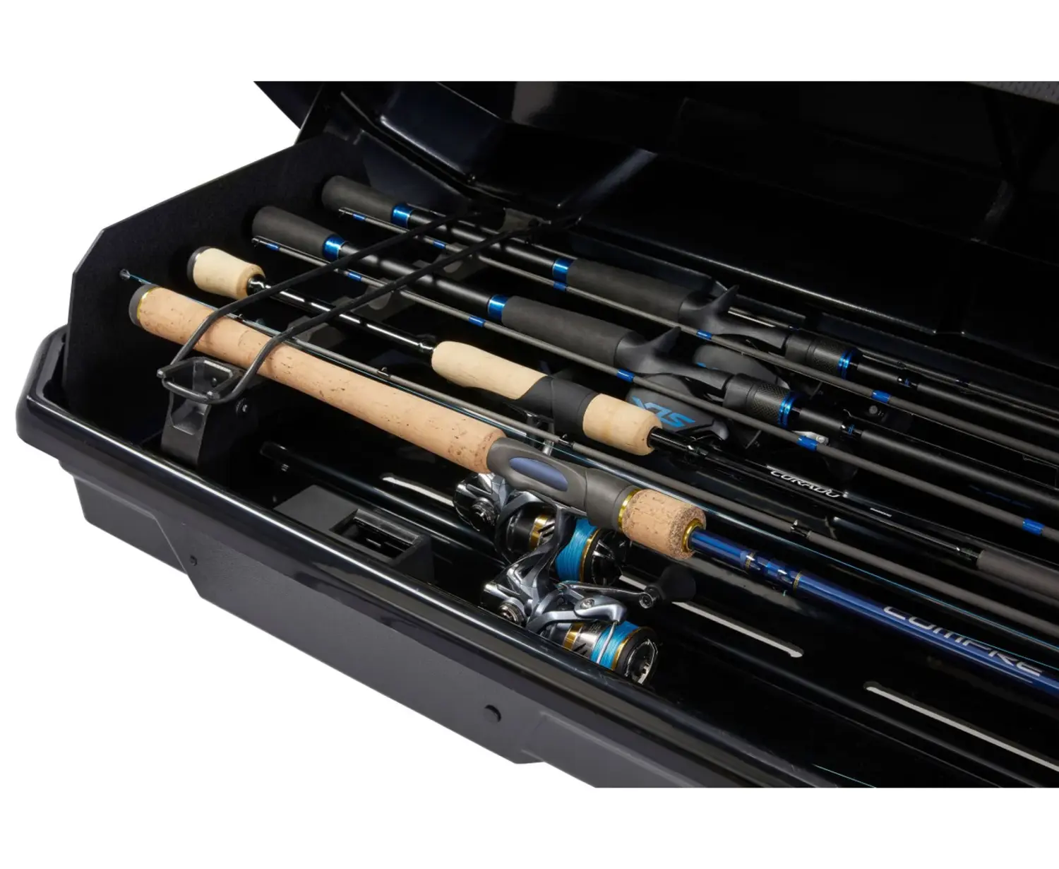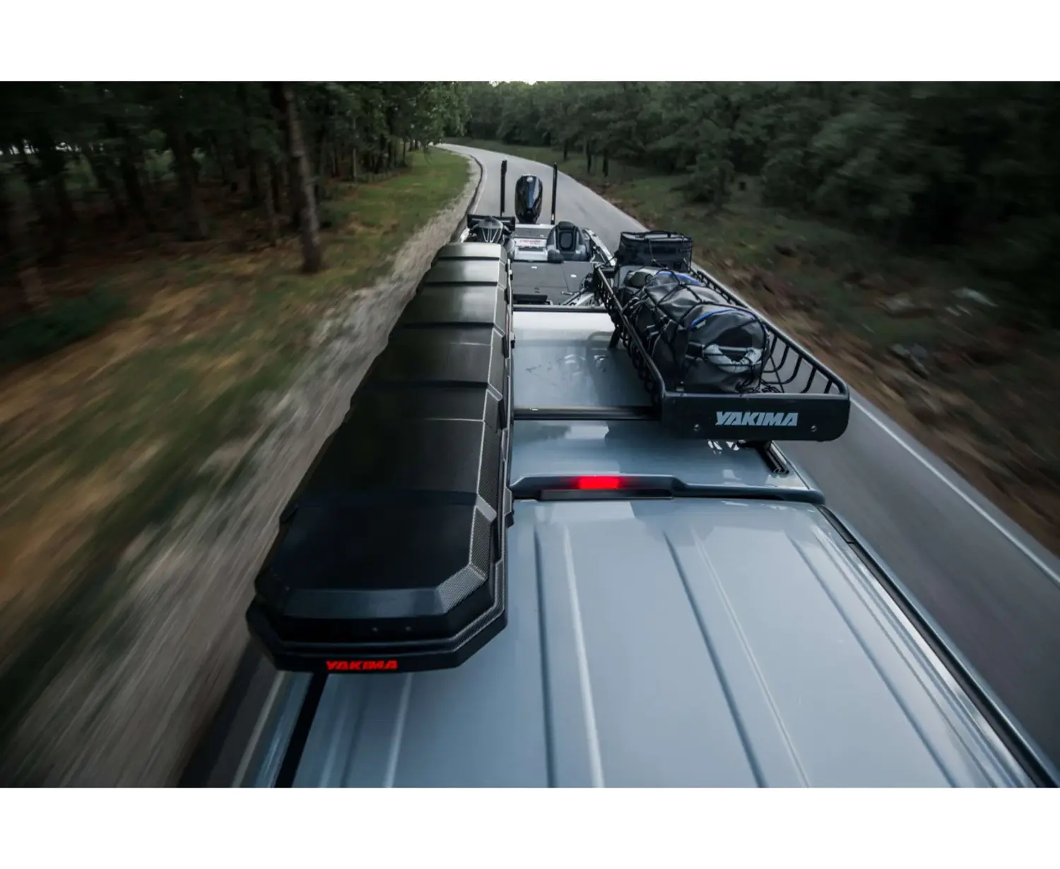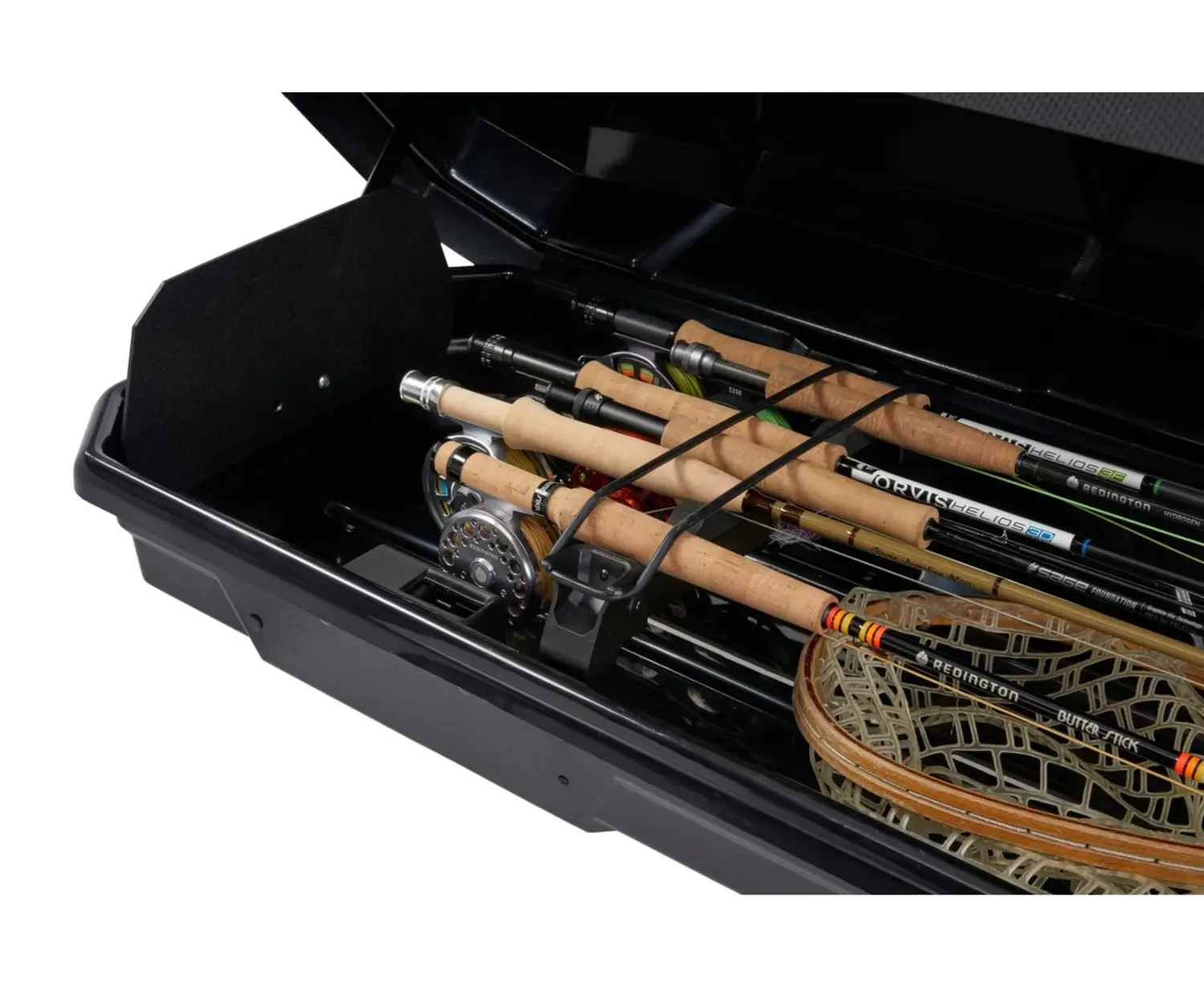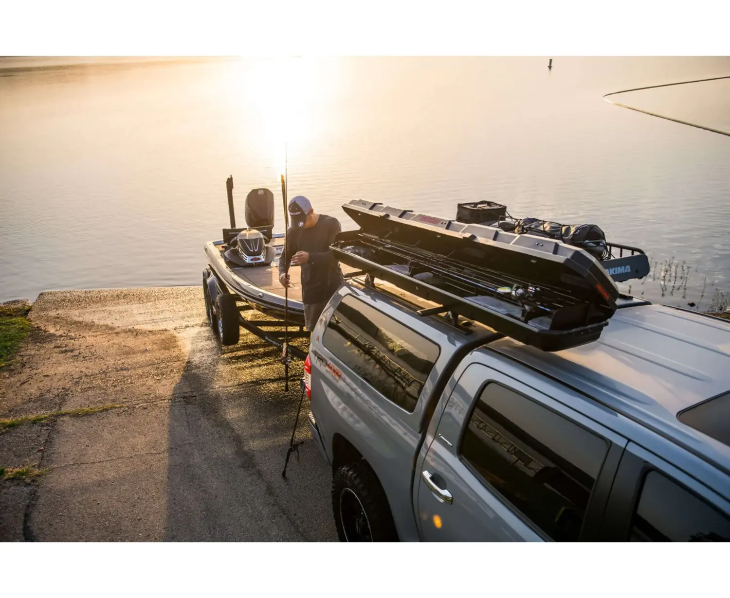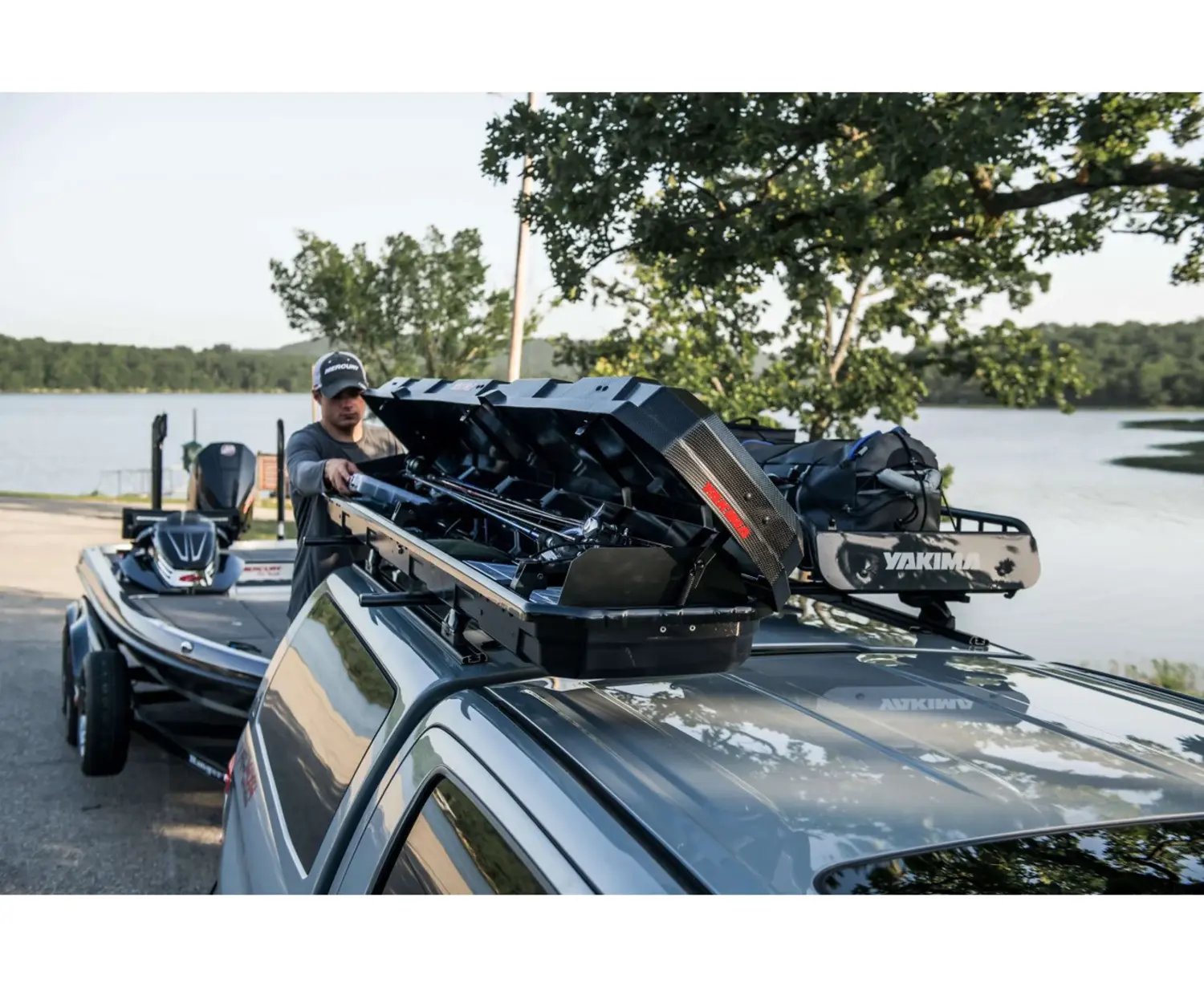 Ready to go when the fish are biting, the TopWater™ is a purpose-built, enclosed fishing rod box— keeping you prepared to hit the water with up to 8 fishing rods, up to 8 ft. long, fully rigged, organized, and out of the vehicle. From spin to bait casting to fly rods, the protective foam pads and retention straps keep rods and reels safely suspended in place without getting banged around or entangled. The space below your rods makes room for low-profile tackle boxes or other wet gear. Made in the USA, this strong and rugged fishing rod box locks your gear with an included Yakima® SKS (Single Key System) lock. For added ease, the universal attachment secures the TopWater to nearly any roof rack or Yakima’s EasyRider™ and RACKandROLL™ trailers.